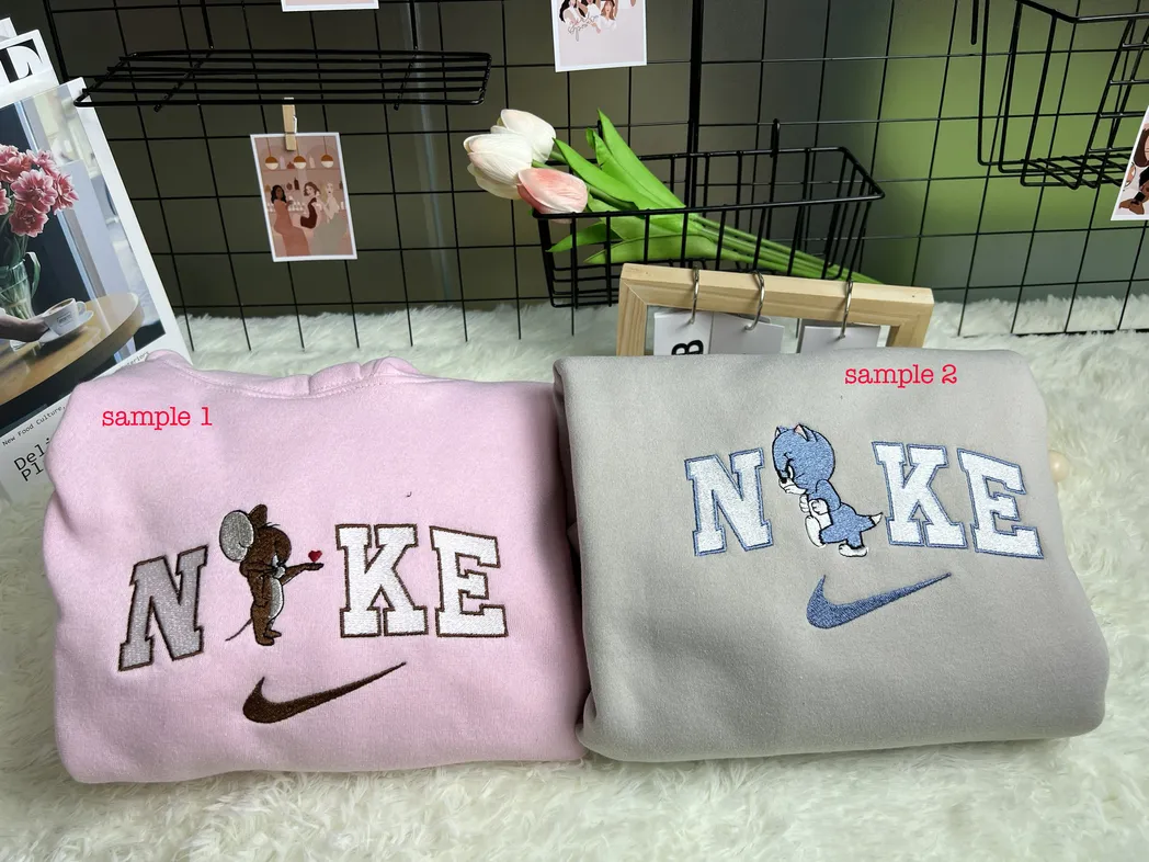 Couple Tom And Jerry Cartoon x Nike Embroidered Sweatshirt Fashion Style For Couples, Valentines Gift For Him/Her