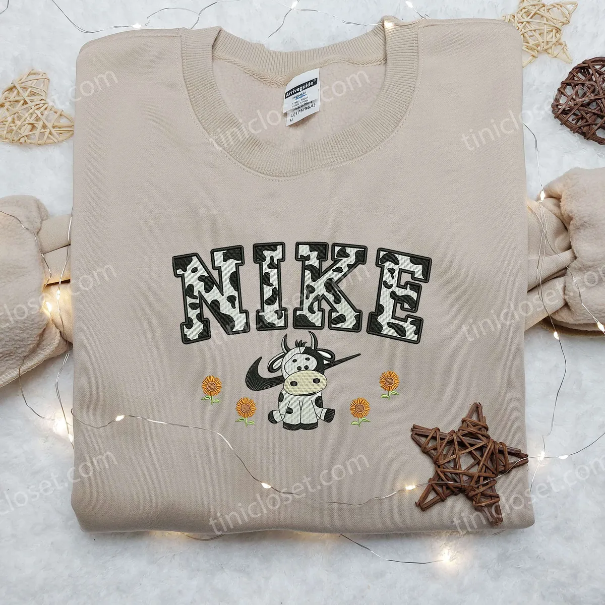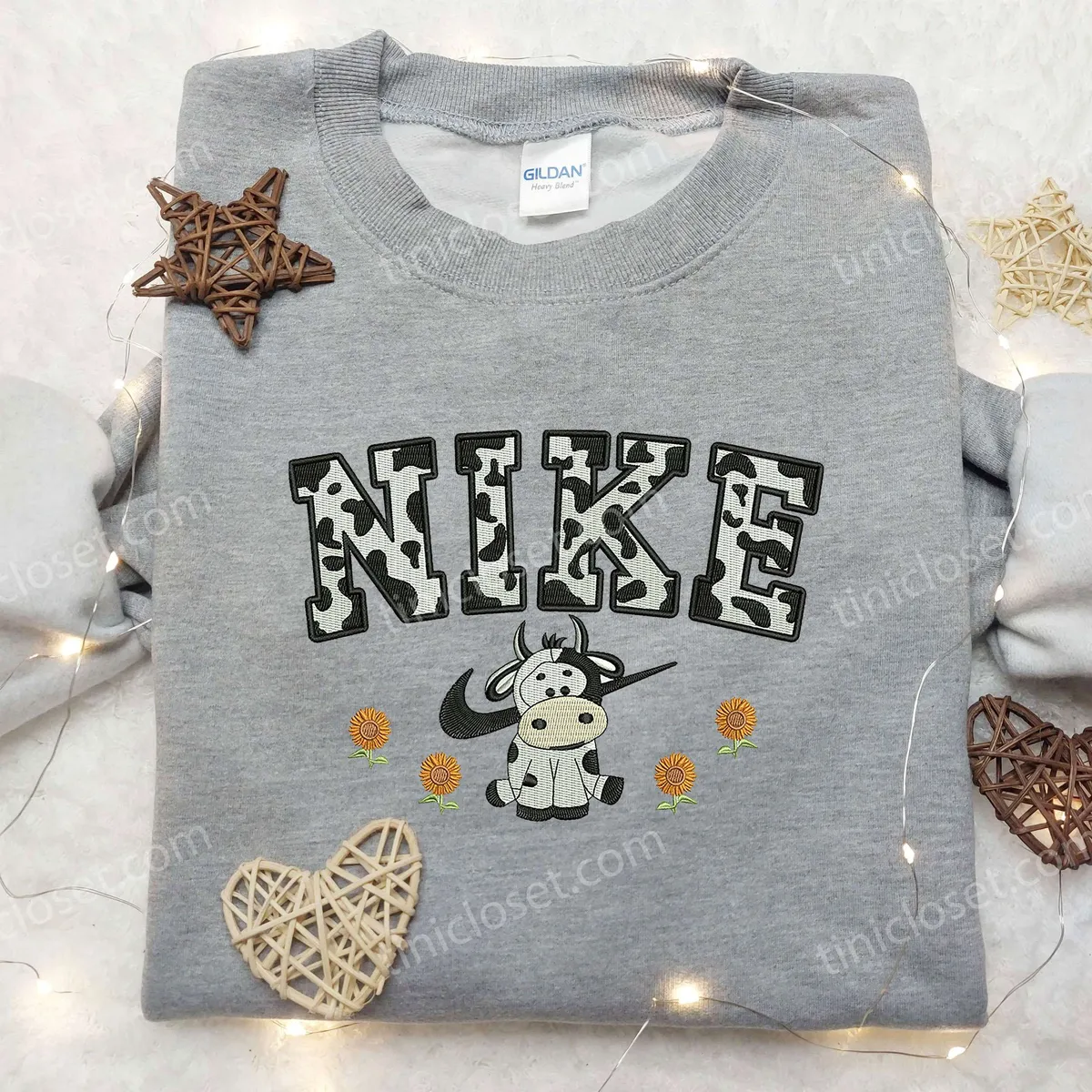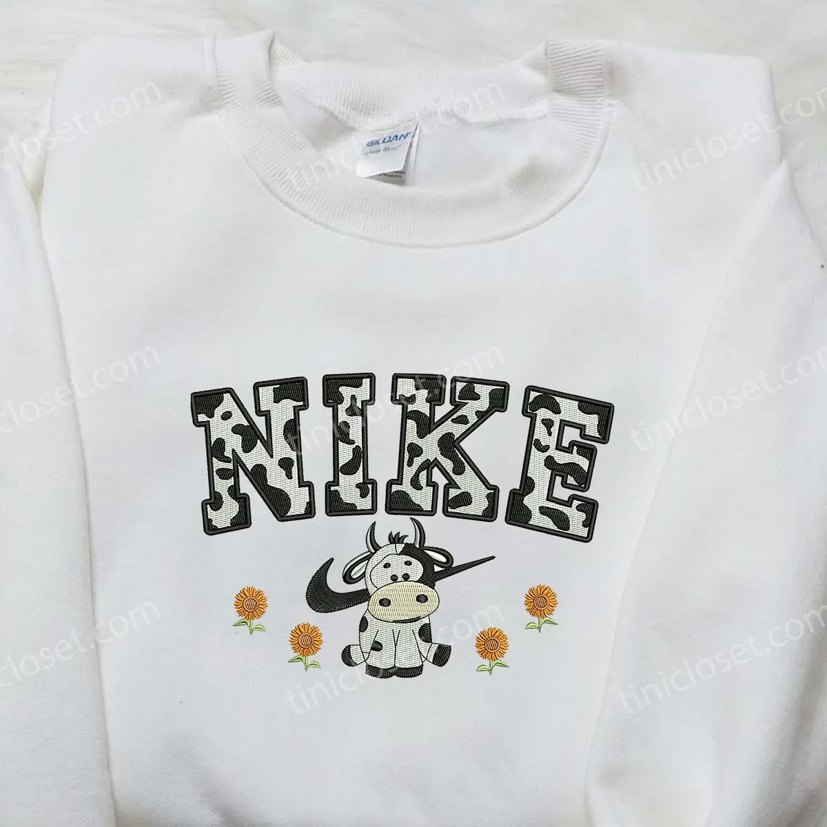 Cow Flower x Nike Embroidered Shirt, Animal Embroidered Shirt, Custom Nike Embroidered Shirt