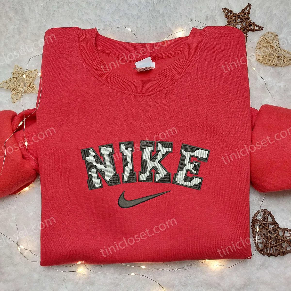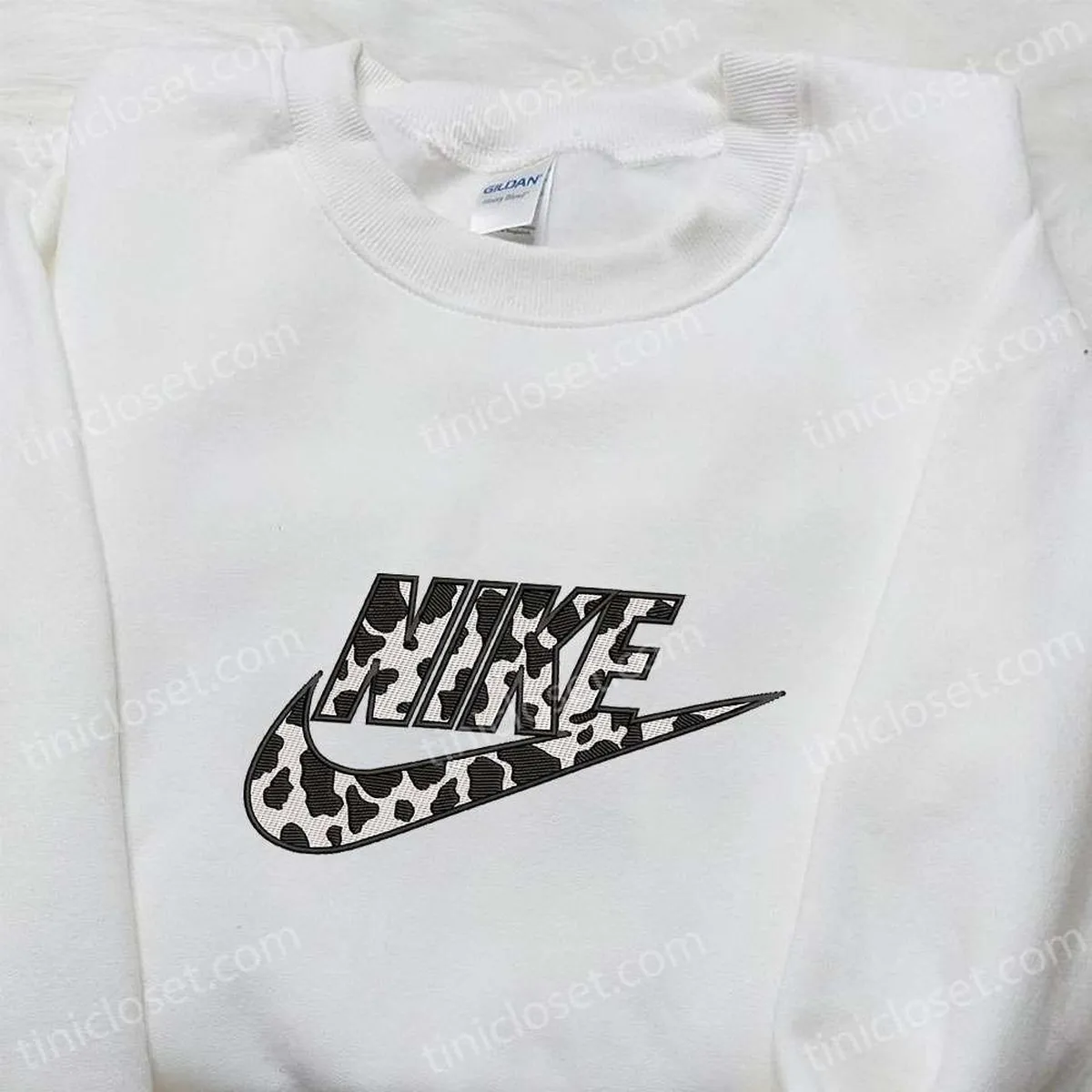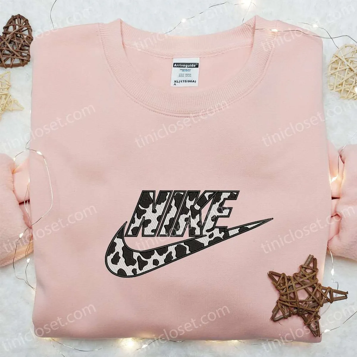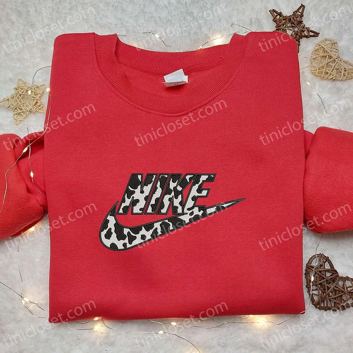 Cow Pattern x Nike Embroidered Hoodie, Nike Inspired Embroidered Shirt, Best Gifts for Family