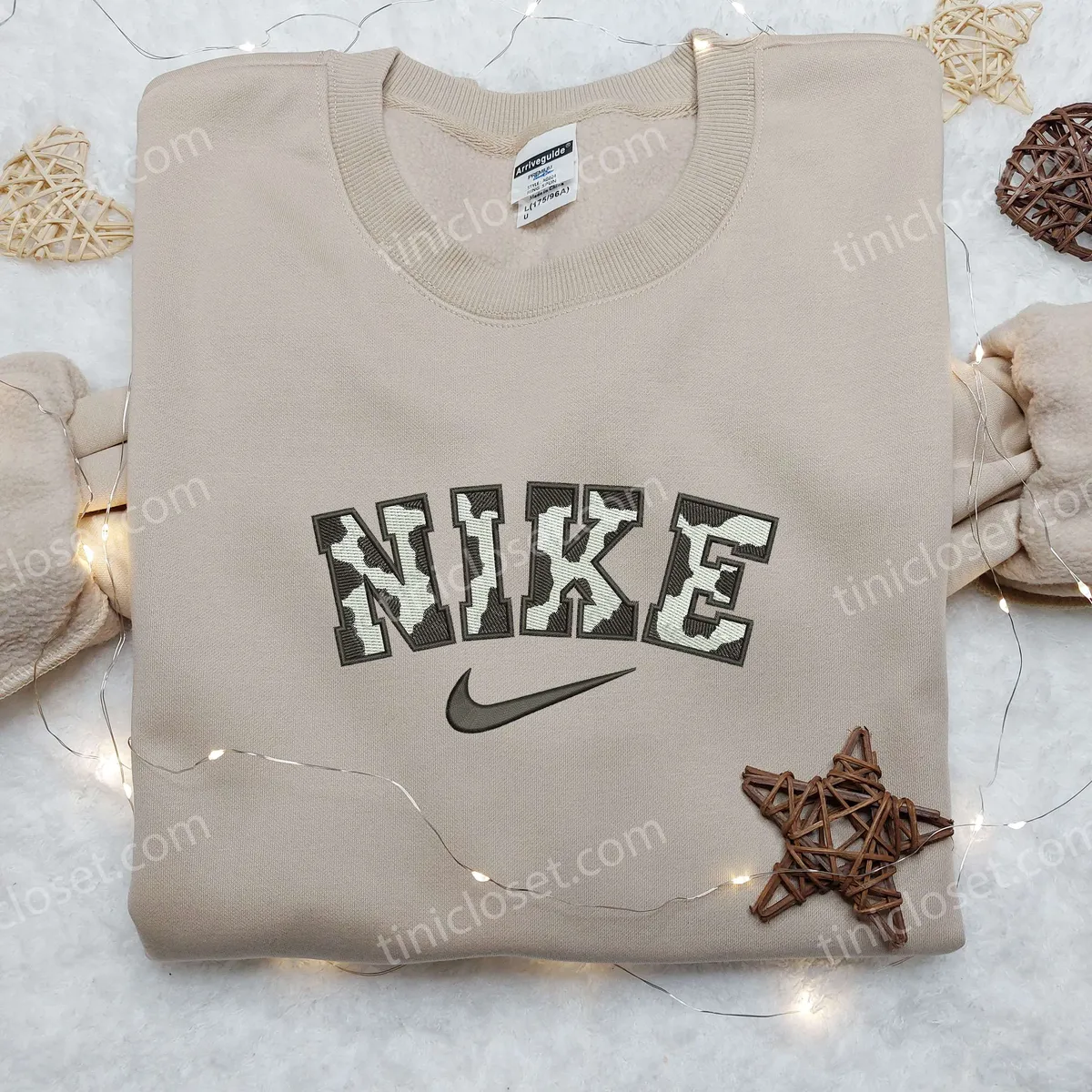 Cow Pattern x Nike Embroidered Shirt, Animal Embroidered Shirt, Custom Nike Embroidered Shirt