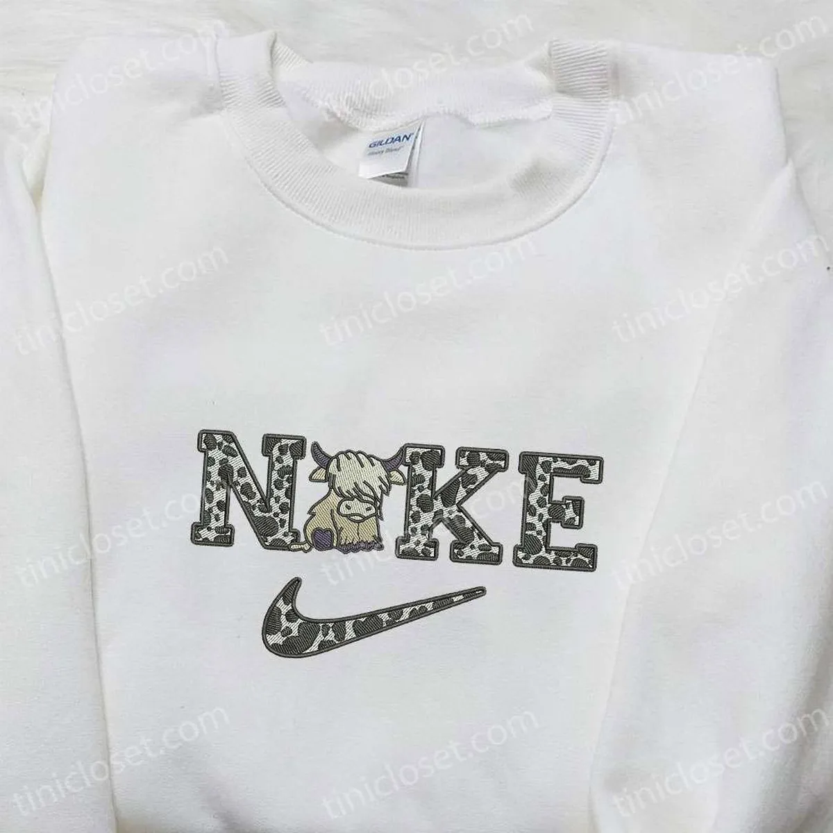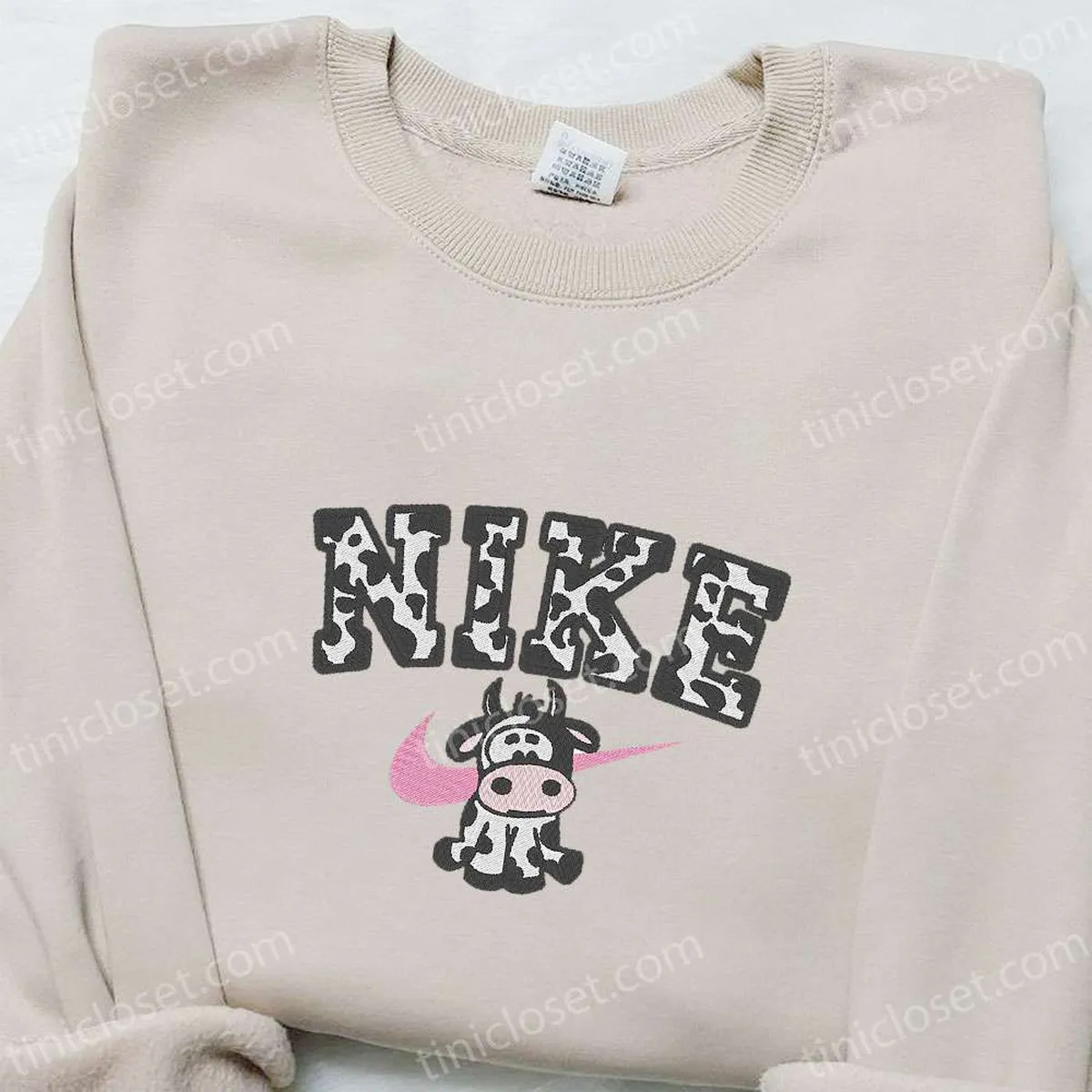 Cow x Nike Embroidered Tshirt, Animal Embroidered Sweatshirt, Nike Inspired Embroidered Hoodie