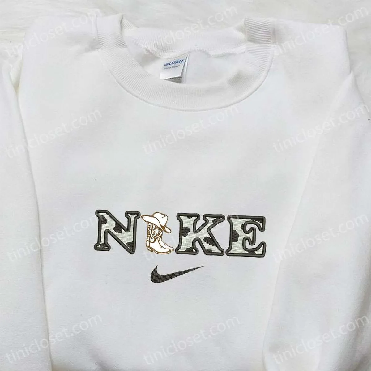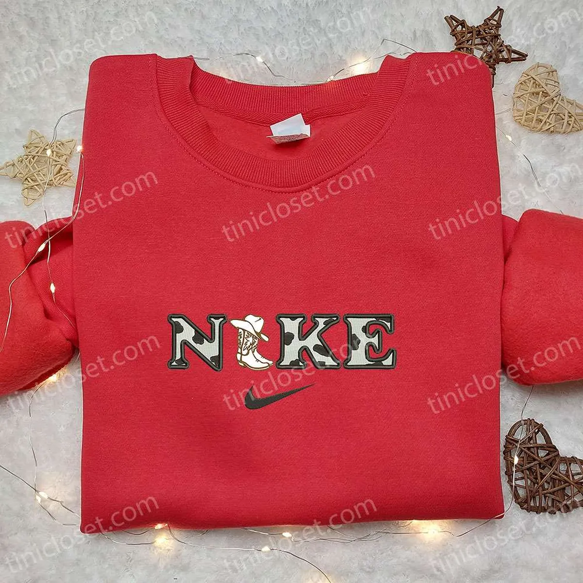 Cowboy Boots And Hat x Nike Embroidered Shirt, Nike Inspired Embroidered Hoodie, Best Gifts For Family