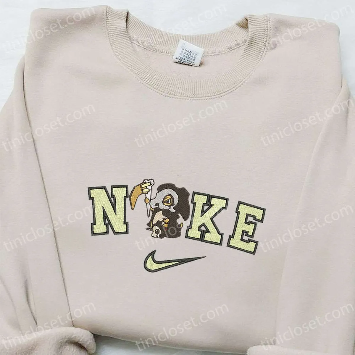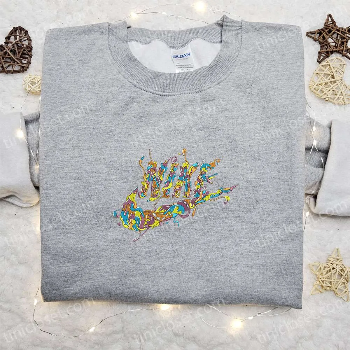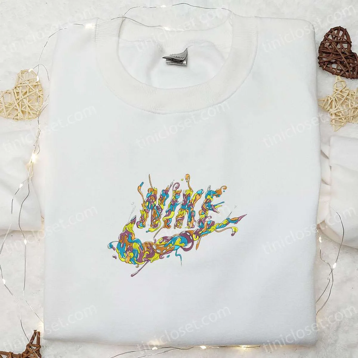 Curly Melting Nike Logo Embroidered Shirt, Nike Inspired Embroidered Hoodie, Best Gifts For Family