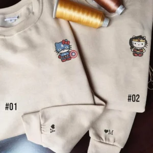 Custom Embroidered Hoodies For Couples, Cute Cartoon Kiss Kitten Couples Embroidered Hoodie, Gift For Couple, Her/Him, Boyfriend, Girlfriend