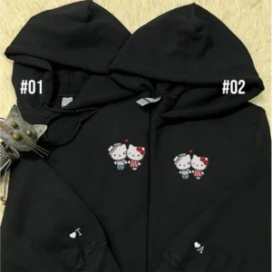 Custom Embroidered Roman Numeral Date Hoodies For Couples, Cute Batman And Kitten Couples Embroidered Hoodie, Gift For Boyfriend, Girlfriend
