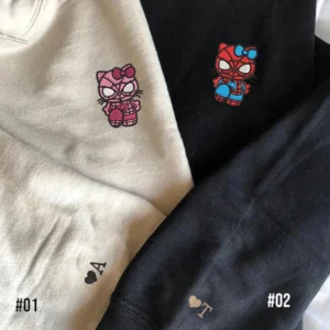 Custom Matching Couple Sweatshirt, Captain Kitten And Wonder Kitten Couples Embroidered Hoodie, Gift For
