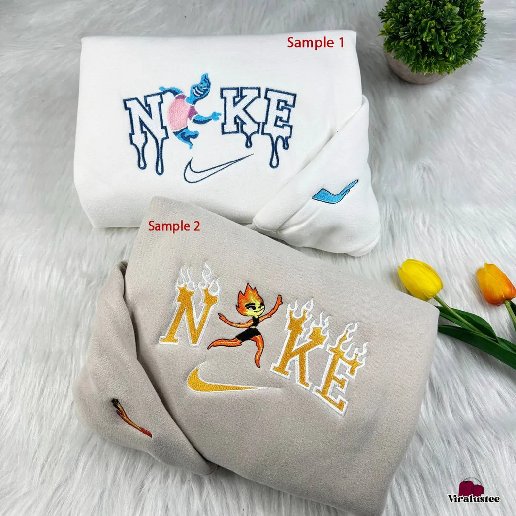 Cute Elemental City Wade And Ember x Nike Embroidered Shirt, Embroidered Sweatshirt Fashion Style For Couples