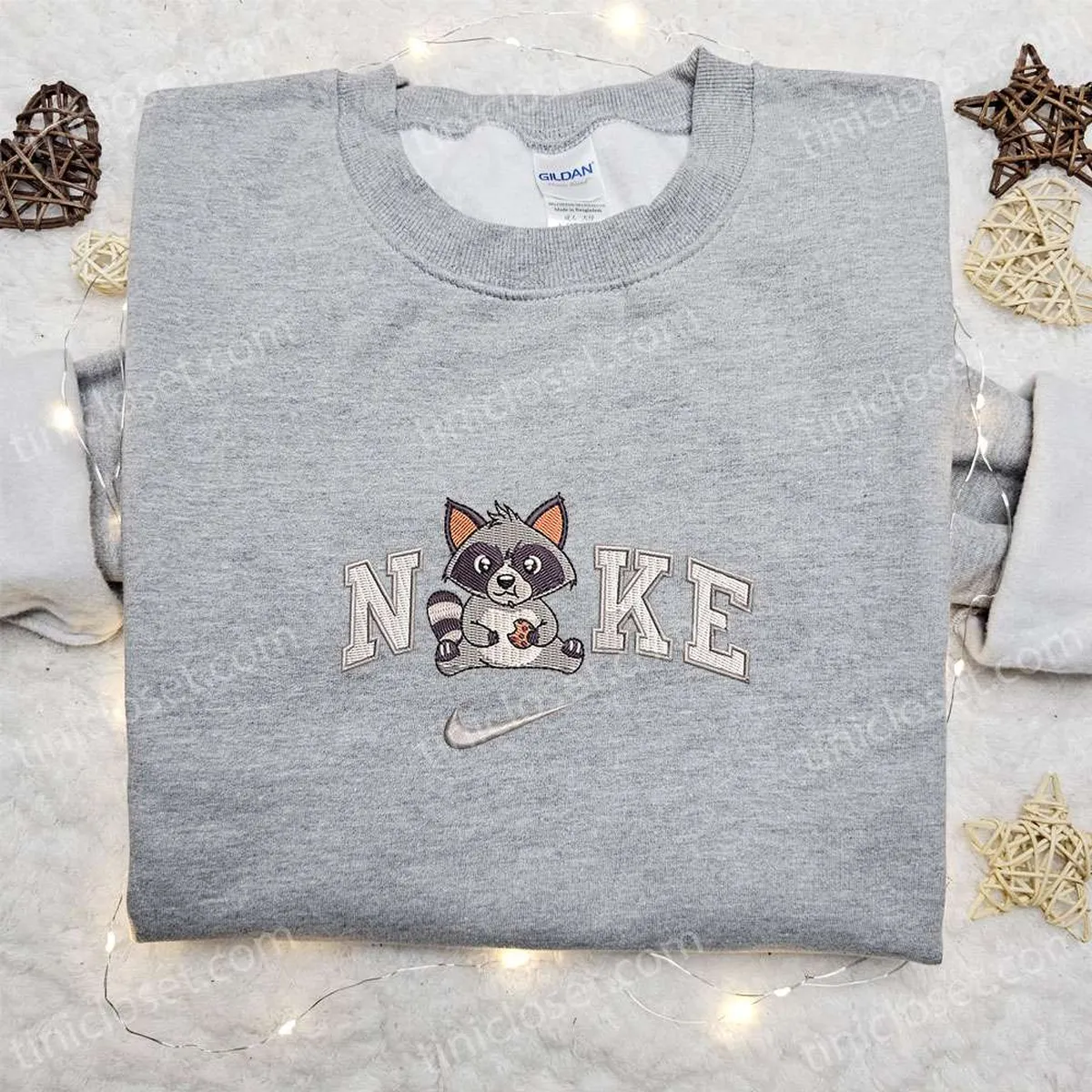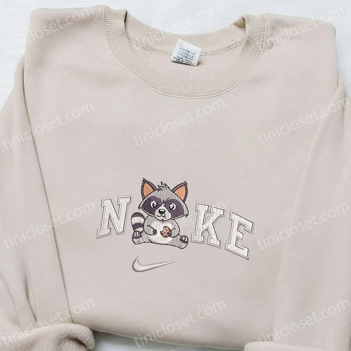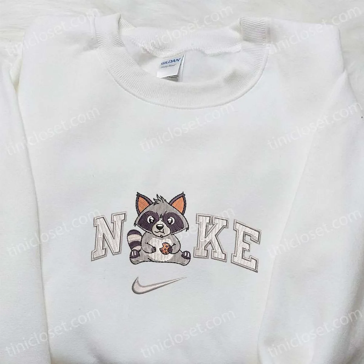 Cute Racoon Eating Cookie x Nike Embroidered Shirt, Animal Embroidered Hoodie, Nike Inspired Embroidered Sweatshirt