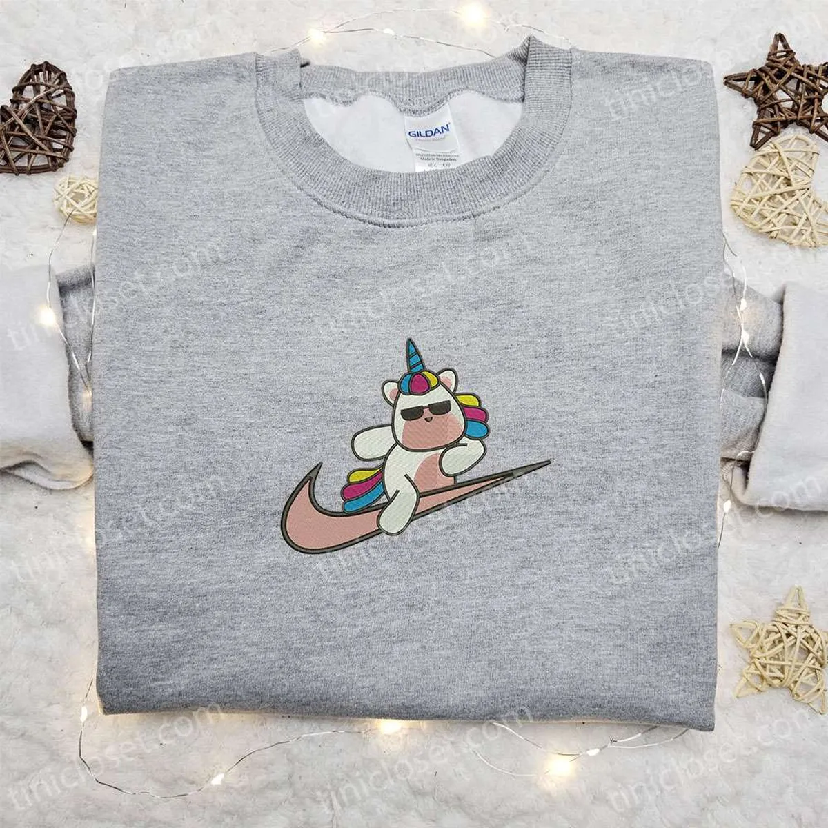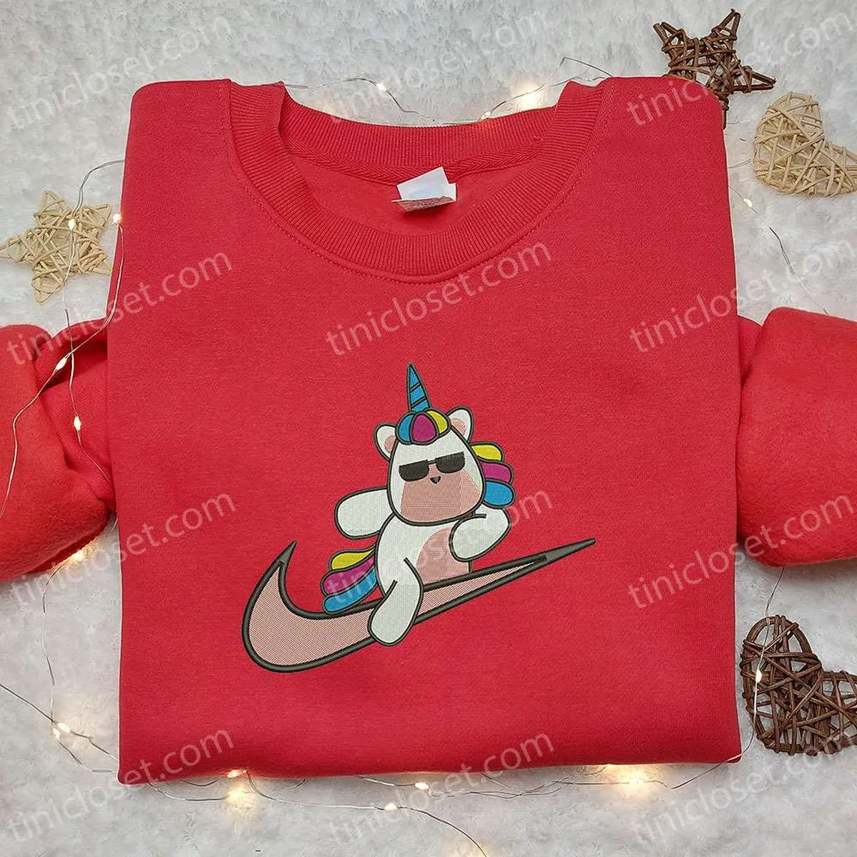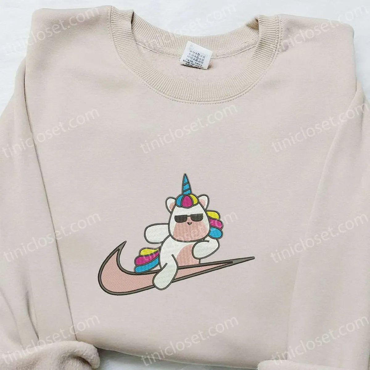 Cute Unicorn x Swoosh Cartoon Embroidered Hoodie, Nike Inspired Embroidered Shirt, Best Gift Ideas for Family