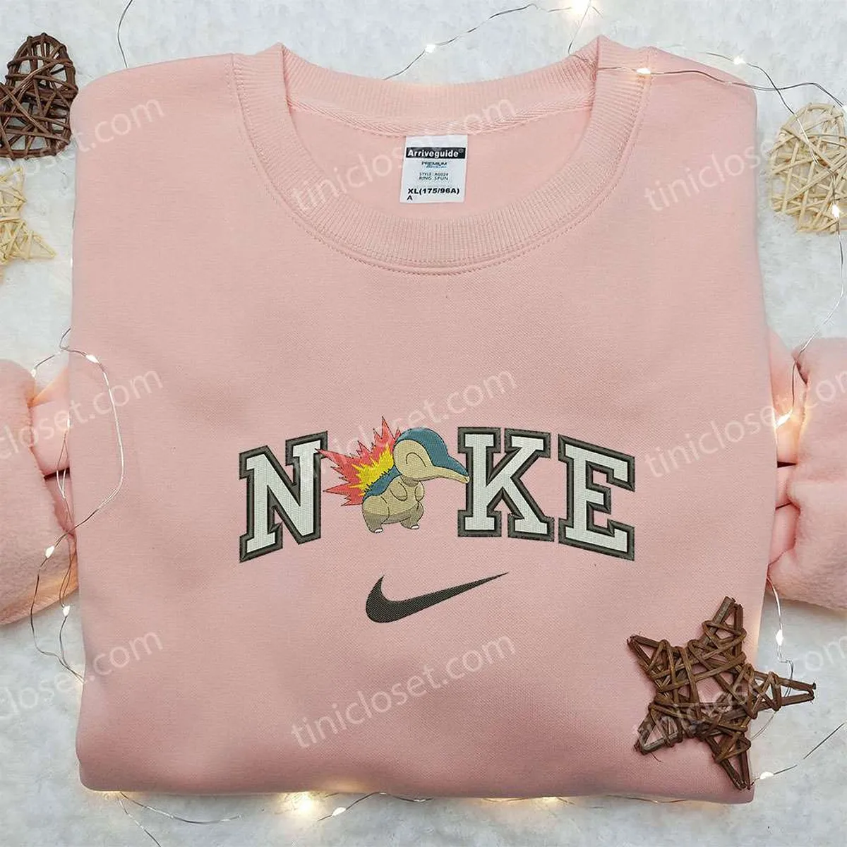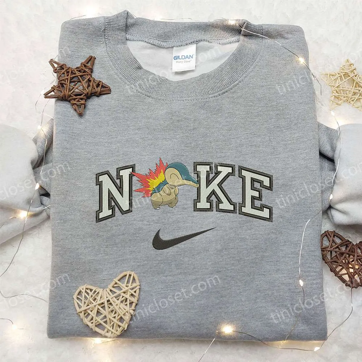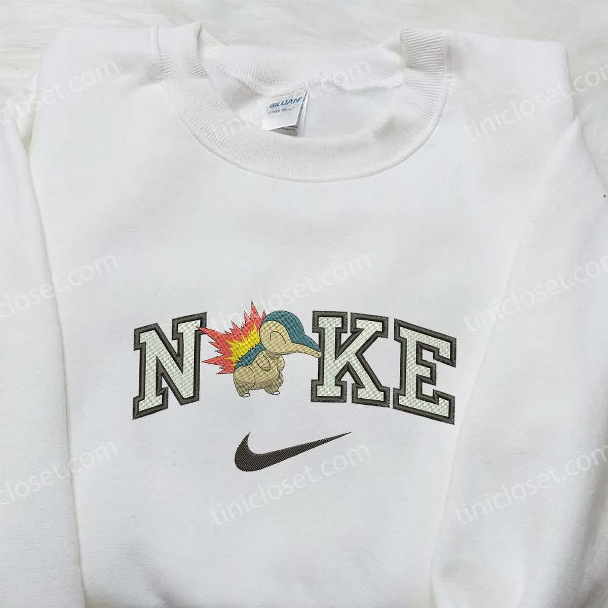 Cyndaquil x Nike Embroidered Shirt, Pokemon Embroidered Shirt, Custom Nike Embroidered Shirt
