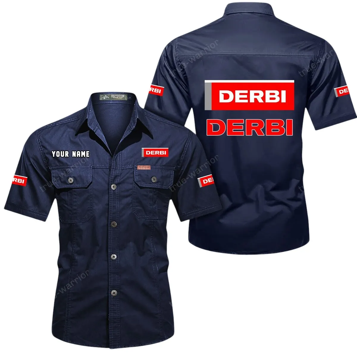 Derbi Motorcycles Short Sleeved Shirt, All Over Print Button Shirt CAR444052625789 – Dark Blue