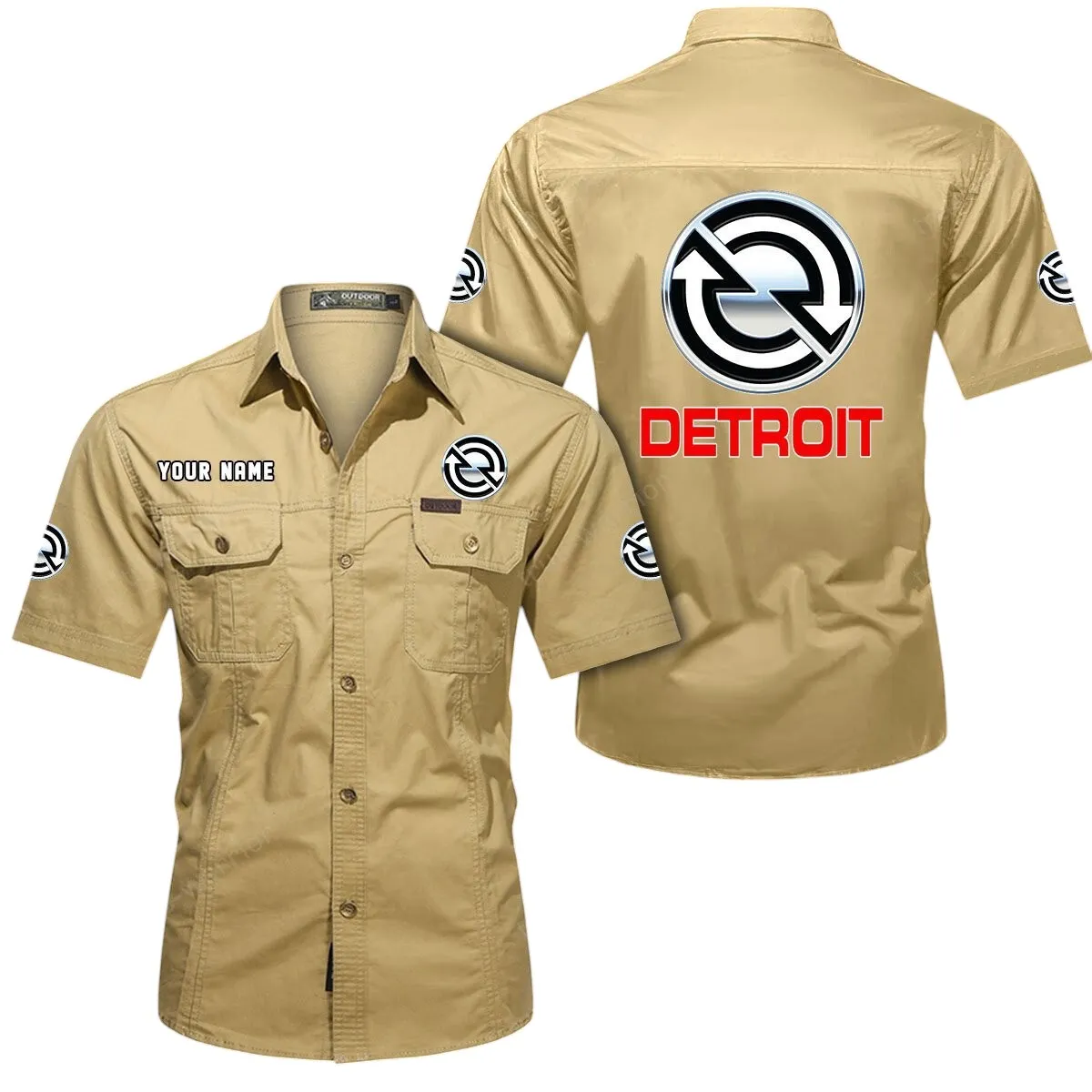 Detroit Diesel Short Sleeved Shirt, All Over Print Button Shirt CAR444052625964 – Khaki
