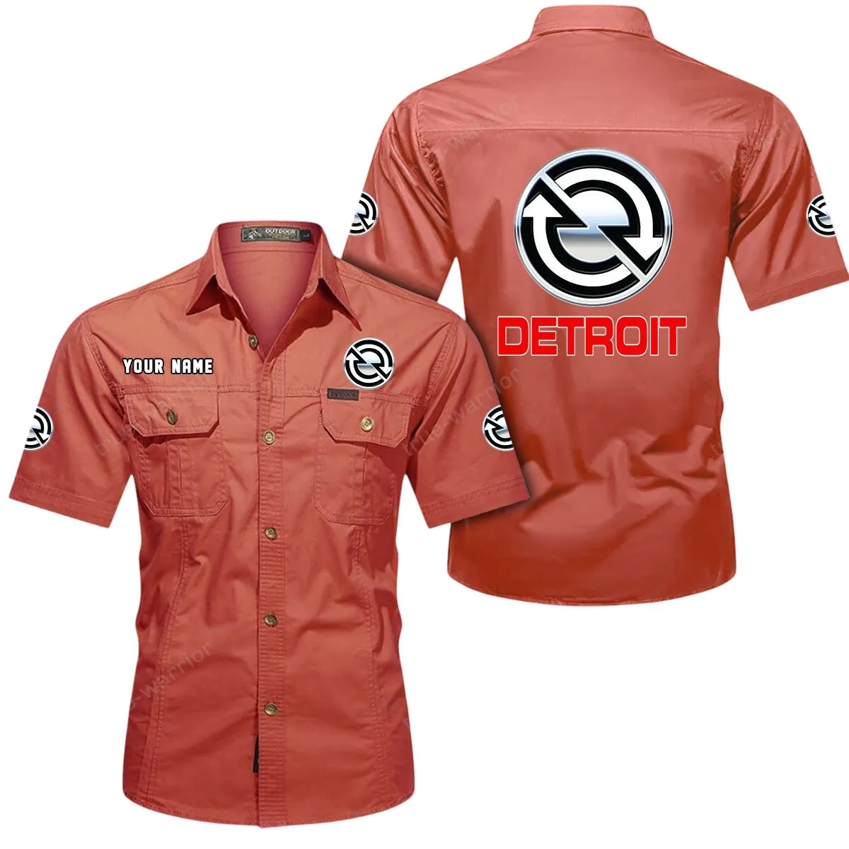 Detroit Diesel Short Sleeved Shirt, All Over Print Button Shirt CAR444052625964 - Khaki