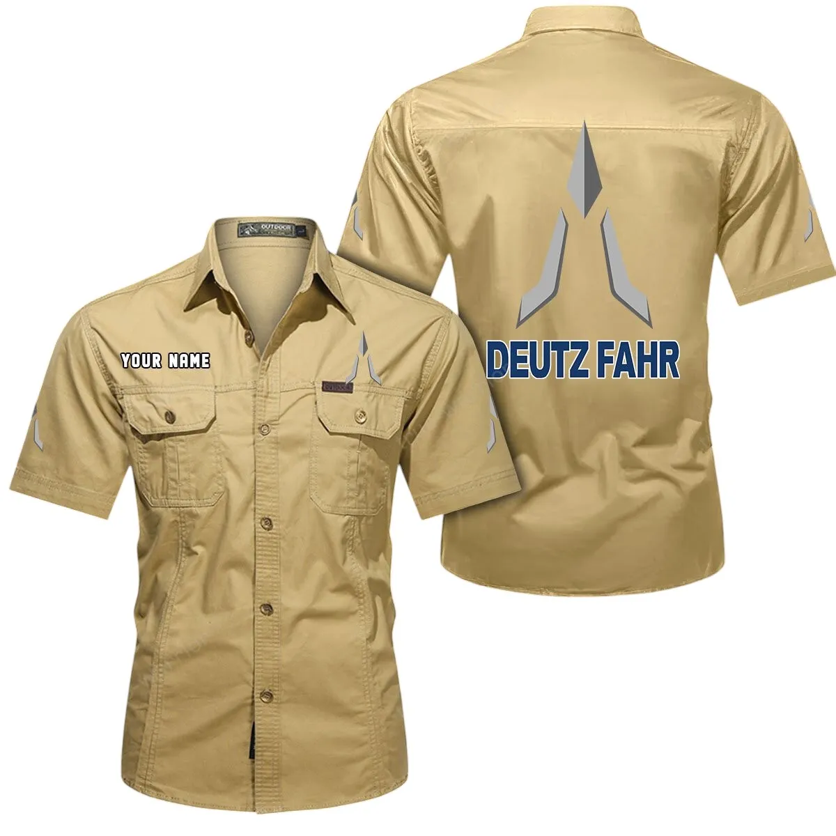 Deutz Fahr Short Sleeved Shirt, All Over Print Button Shirt CAR444052625943 – Khaki