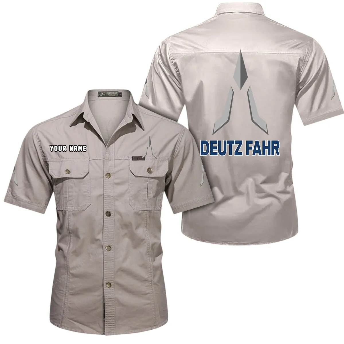 Deutz Fahr Short Sleeved Shirt, All Over Print Button Shirt CAR444052625943 - Khaki