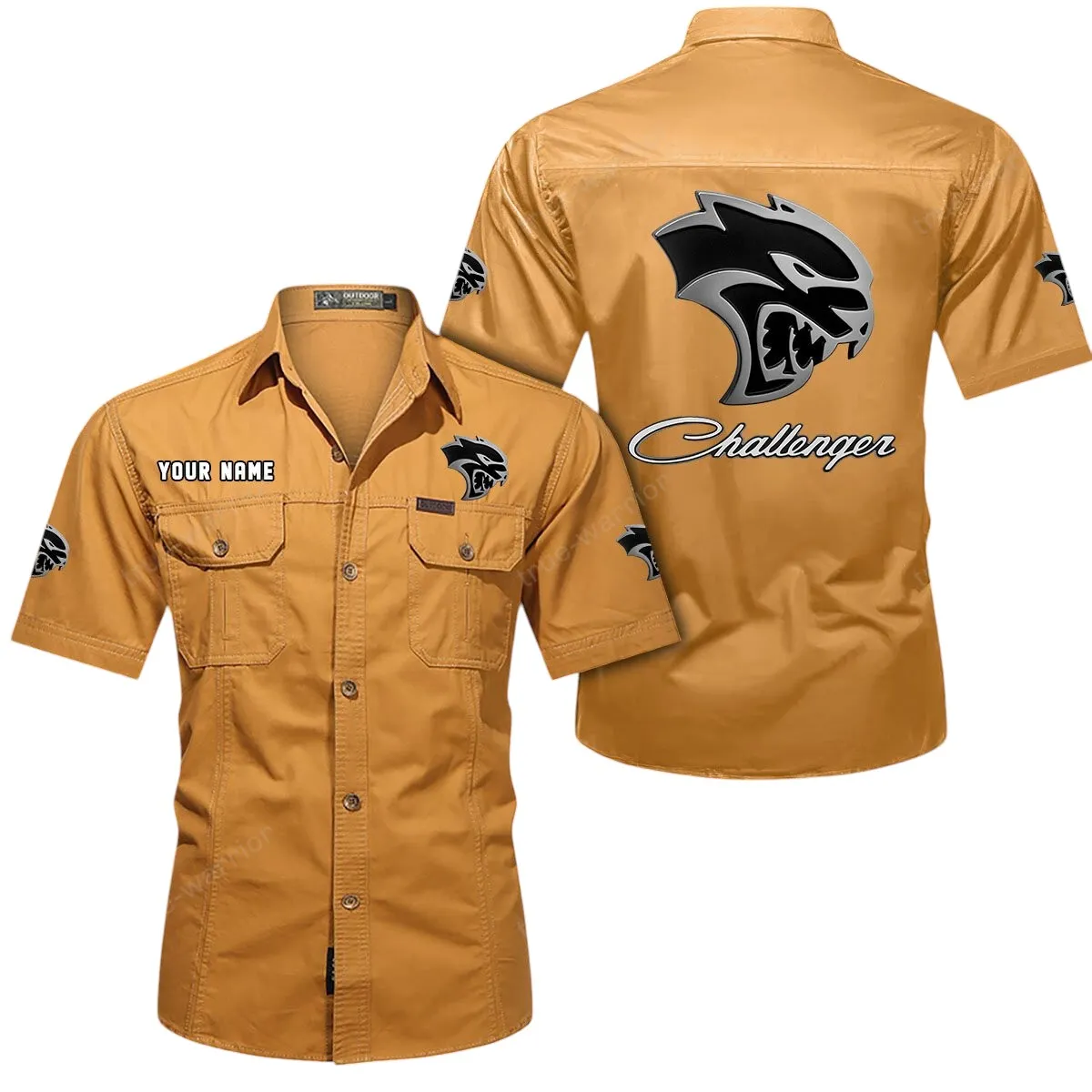 Dodge Challenger Short Sleeved Shirt, All Over Print Button Shirt CAR444052625803 - Khaki