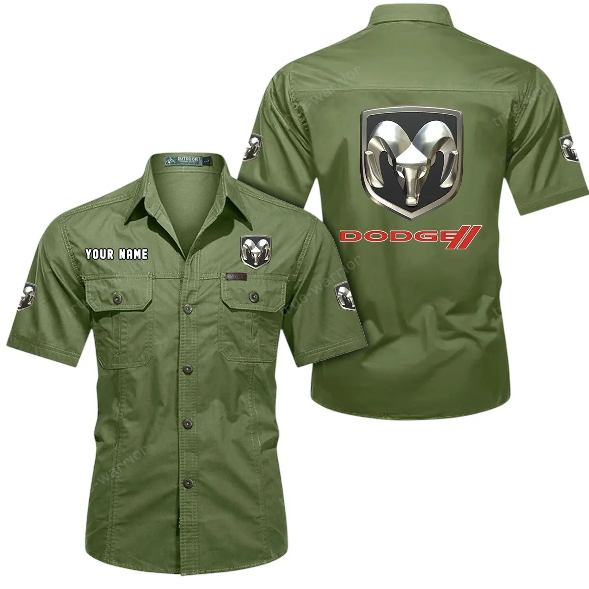 Dodge Short Sleeved Shirt, All Over Print Button Shirt CAR444052625811 - Army Green