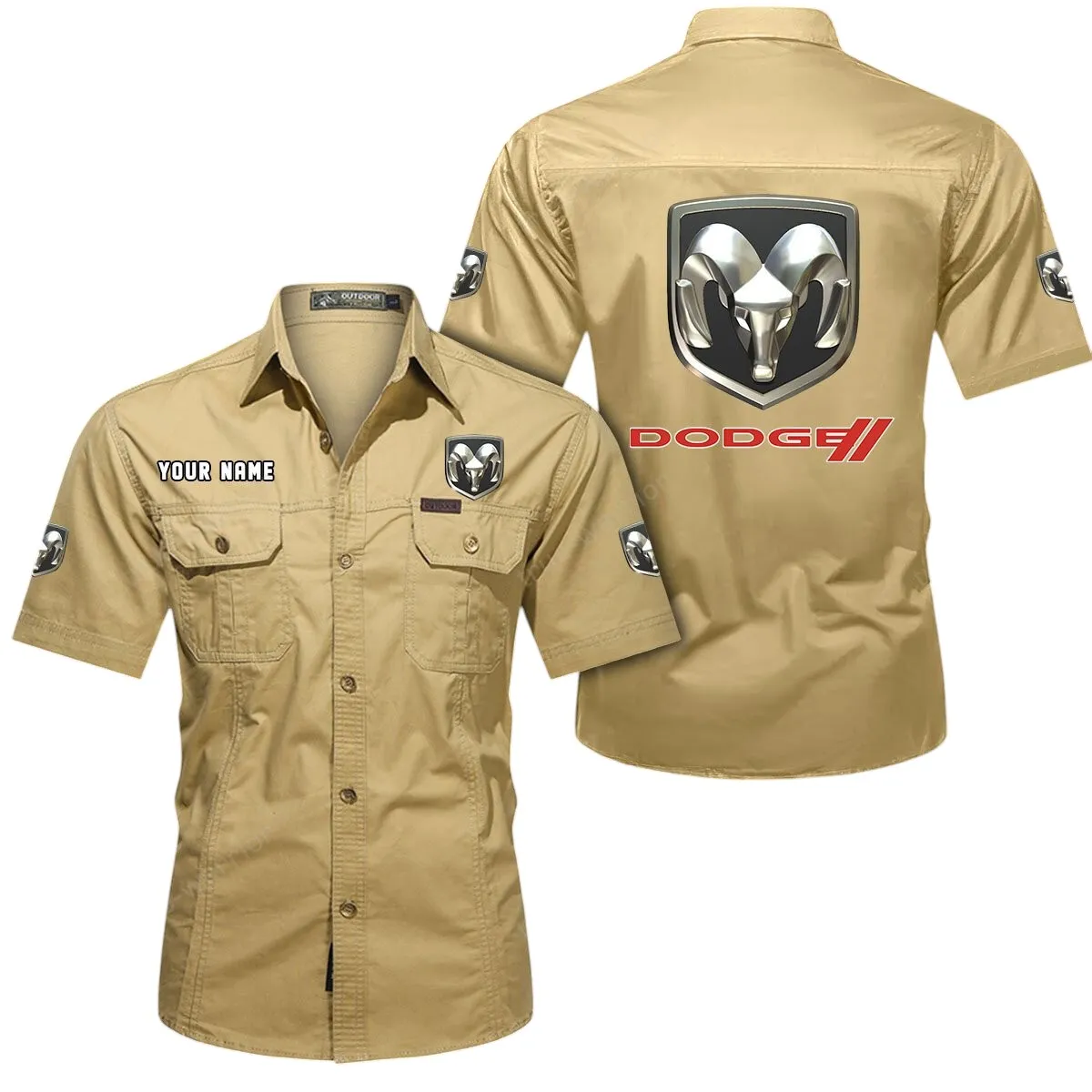 Dodge Short Sleeved Shirt, All Over Print Button Shirt CAR444052625811 - Beige