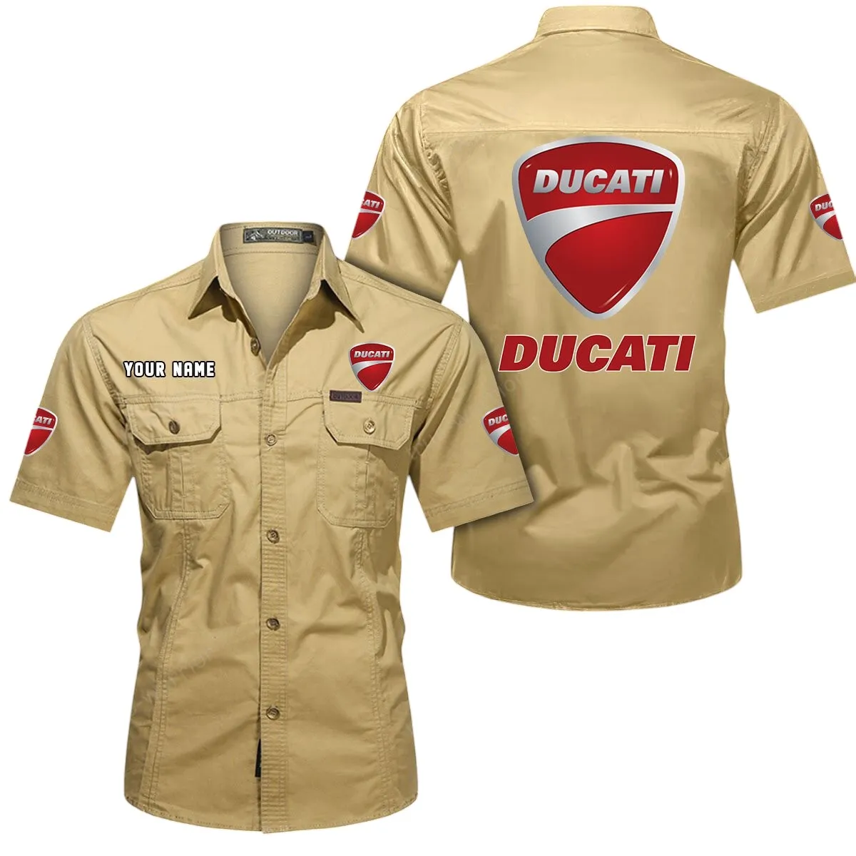Ducatti Short Sleeved Shirt, All Over Print Button Shirt CAR444052625852 – Khaki