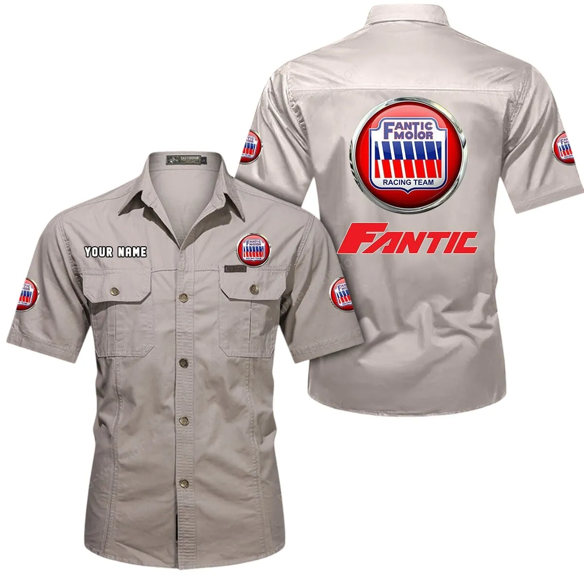 Fantic Motorcycles Short Sleeved Shirt, All Over Print Button Shirt CAR444052625830 - Khaki