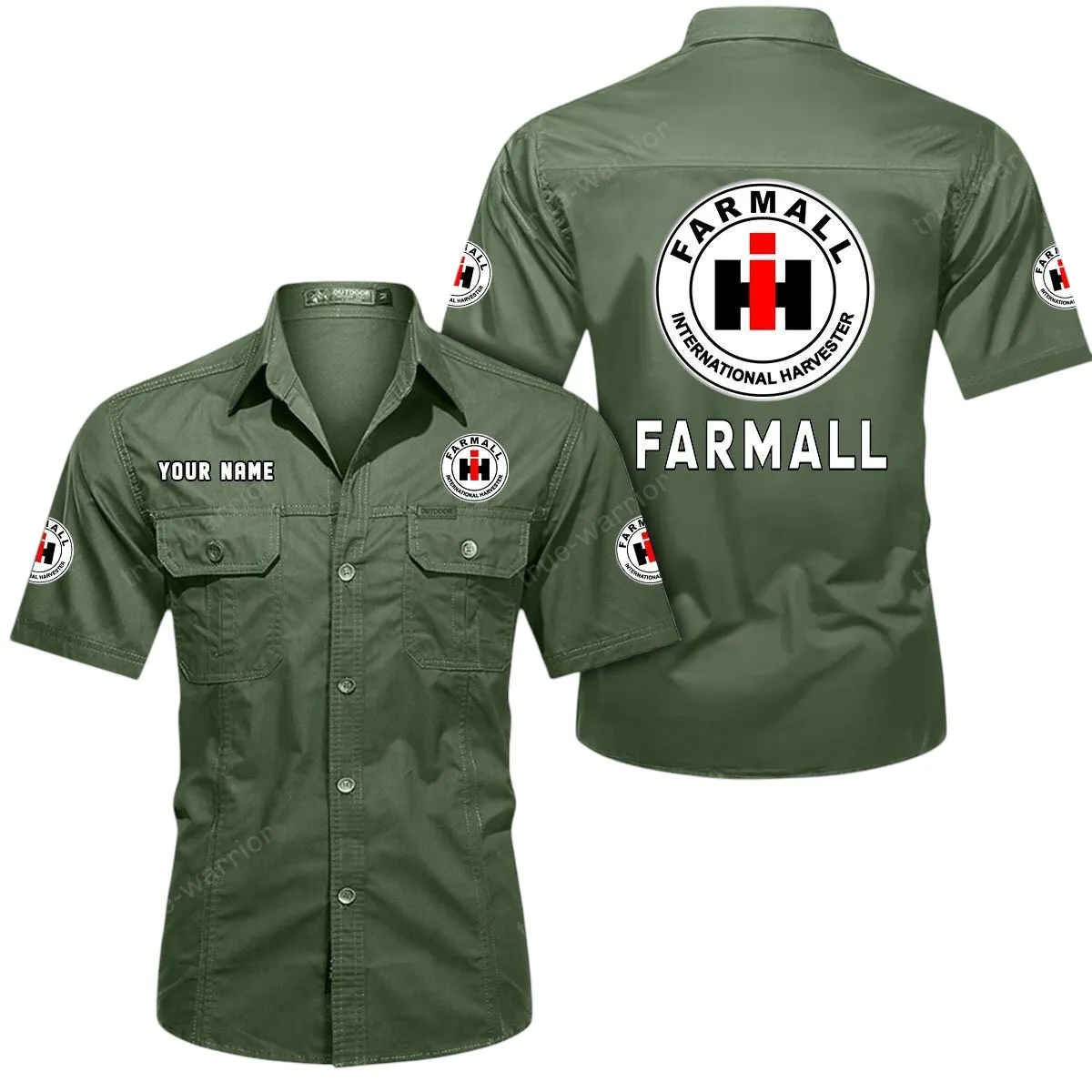 Farmall Short Sleeved Shirt, All Over Print Button Shirt CAR444052625880 – Army Green