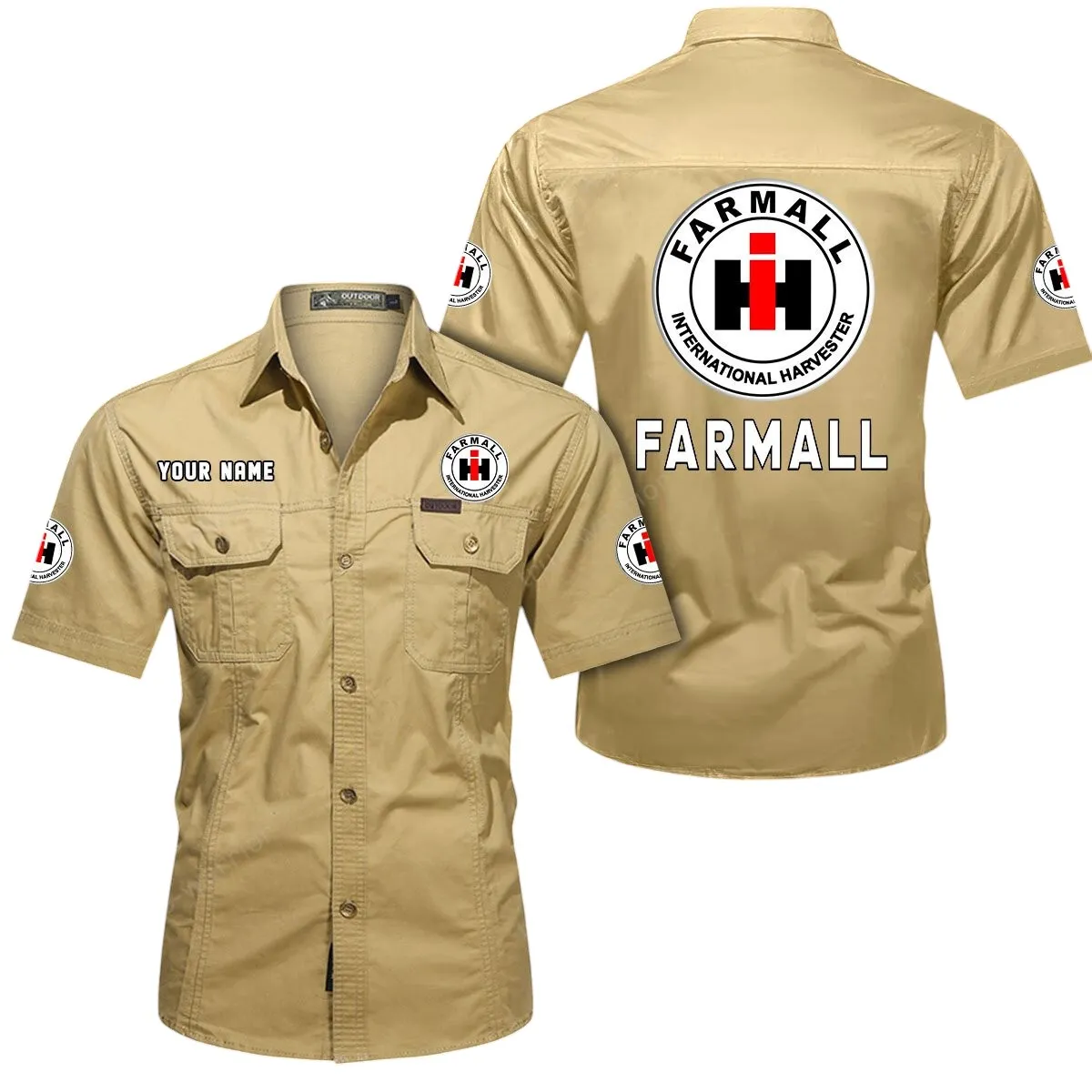 Farmall Short Sleeved Shirt, All Over Print Button Shirt CAR444052625880 – Khaki