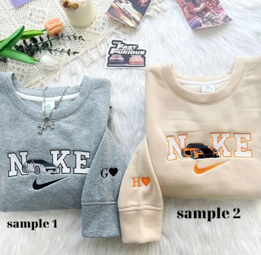 Fast And Furious Cars x Nike Embroidered Sweatshirt Fashion Style For Couples, Valentines Gift For Him/Her