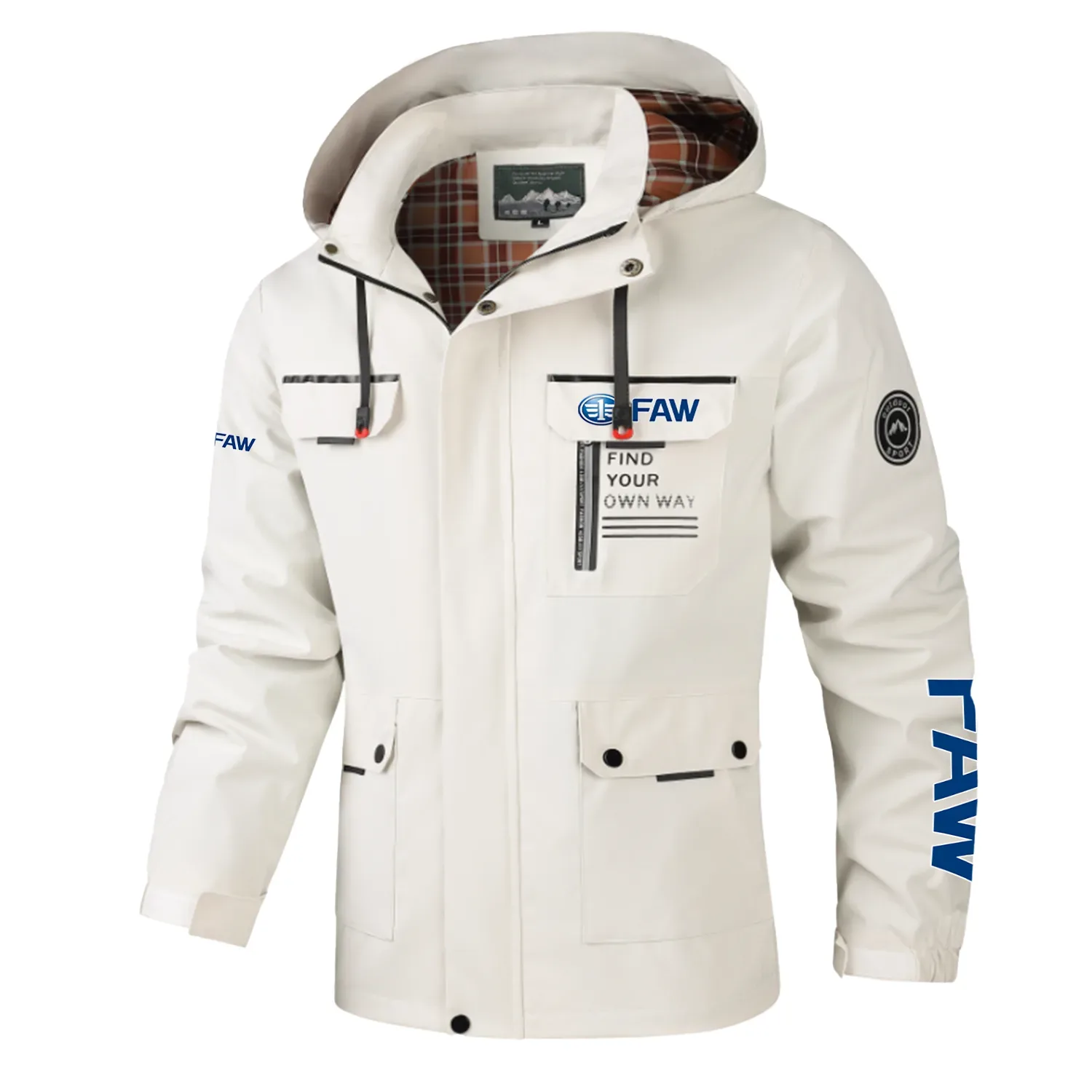 FAW Exclusive Logo Multi-Pocket Windbreaker Jacket, Waterproof, Detachable Hood Coat OUFASJ0819FAZ – FAW Gift