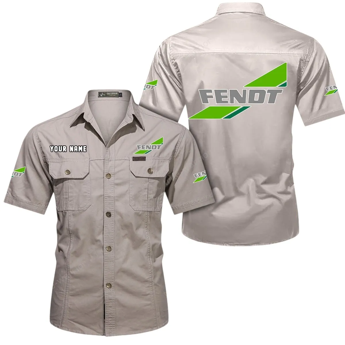 Fendt Short Sleeved Shirt, All Over Print Button Shirt CAR444052625918 - Army Green