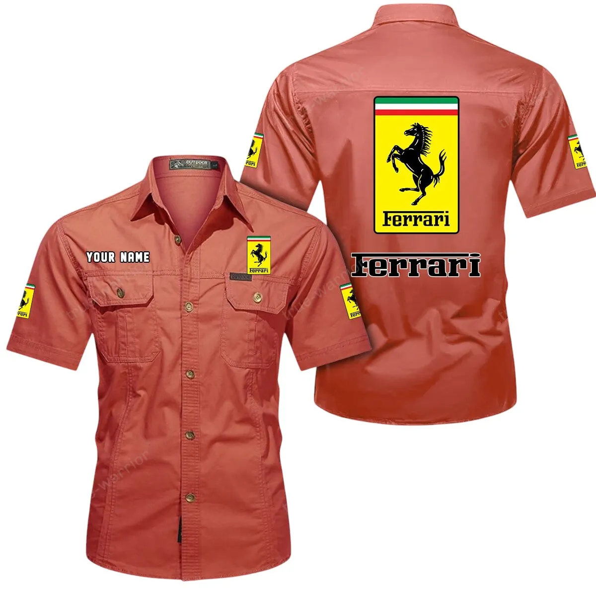 Ferrari Short Sleeved Shirt, All Over Print Button Shirt CAR444052625858 - Turmeric