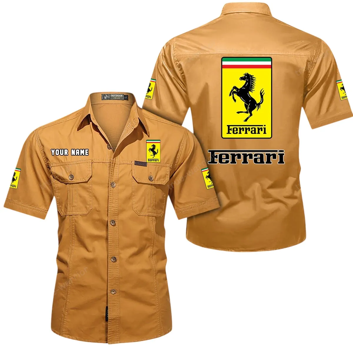 Ferrari Short Sleeved Shirt, All Over Print Button Shirt CAR444052625858 - Khaki