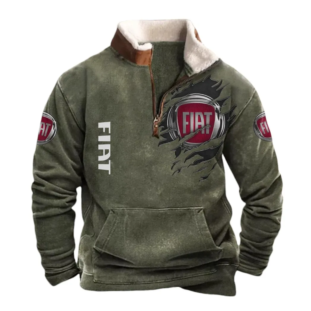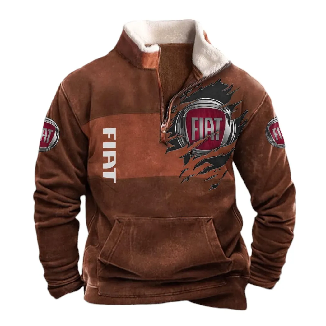 Fiat Half Zip Fur Collar Hoodie CAR0926092051, All Over Print Half Zip Fur Collar Hoodie