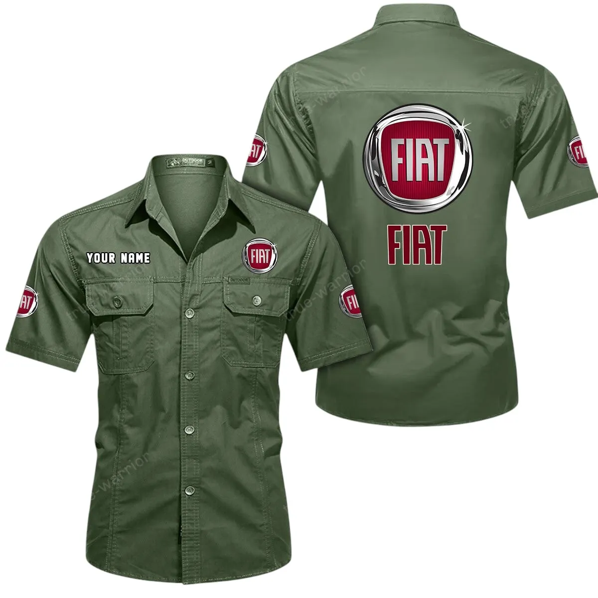 Fiat Short Sleeved Shirt, All Over Print Button Shirt CAR444052625786 – Army Green