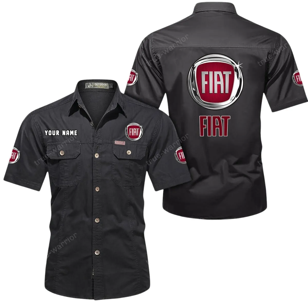 Fiat Short Sleeved Shirt, All Over Print Button Shirt CAR444052625786 - Cowboy Blue