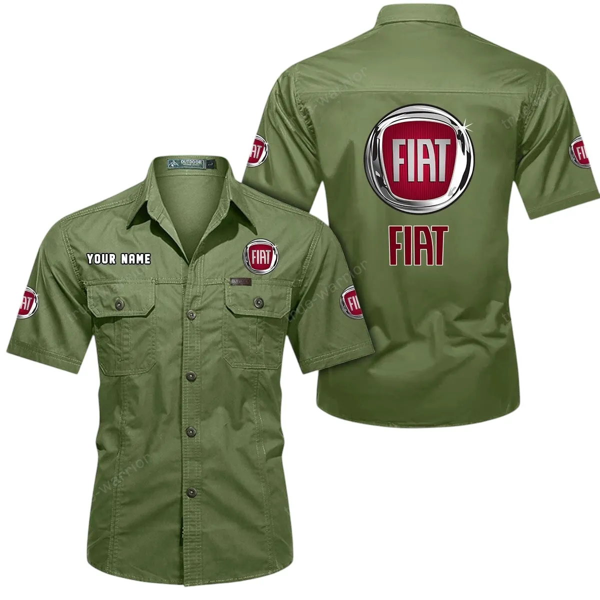 Fiat Short Sleeved Shirt, All Over Print Button Shirt CAR444052625786 - Army Green
