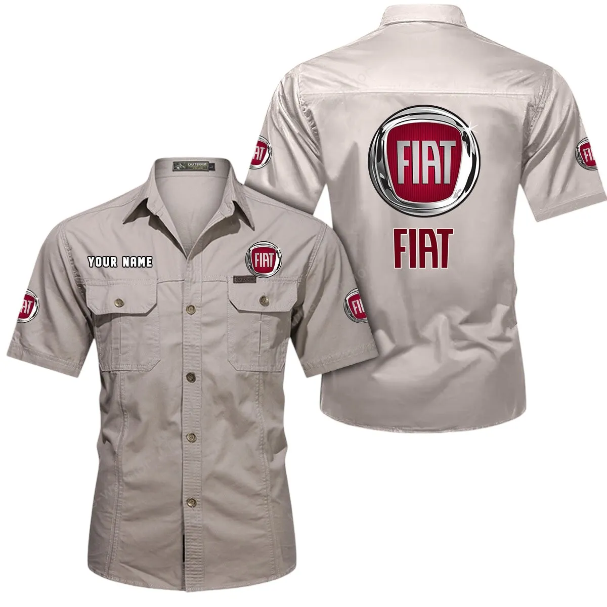 Fiat Short Sleeved Shirt, All Over Print Button Shirt CAR444052625786 – Beige