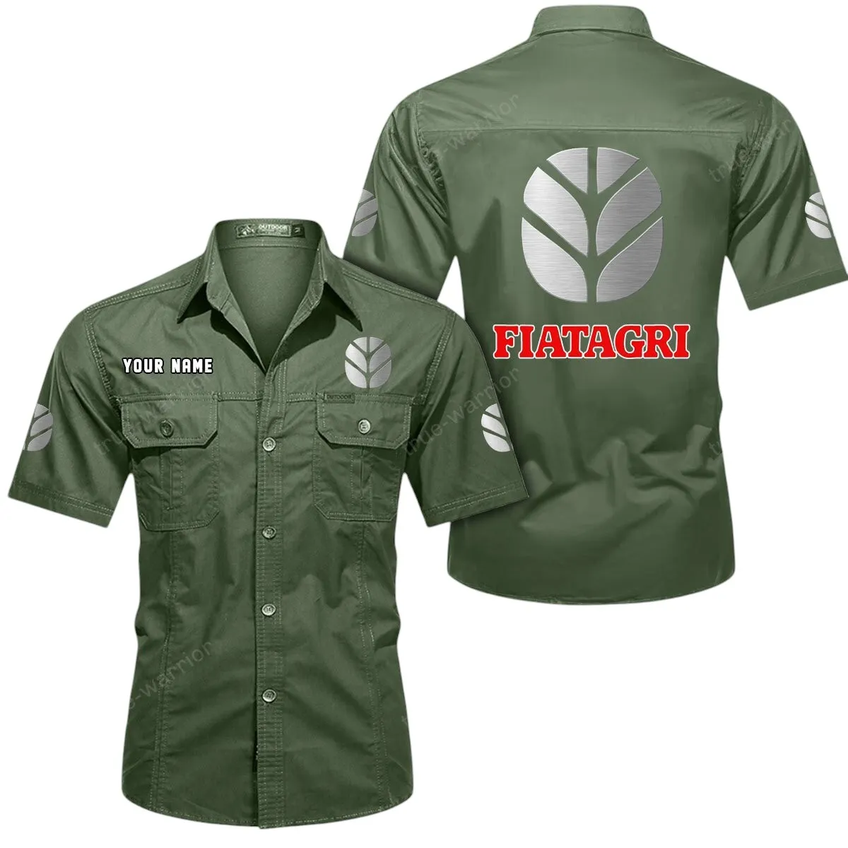 Fiatagri Short Sleeved Shirt, All Over Print Button Shirt CAR444052625937 – Army Green