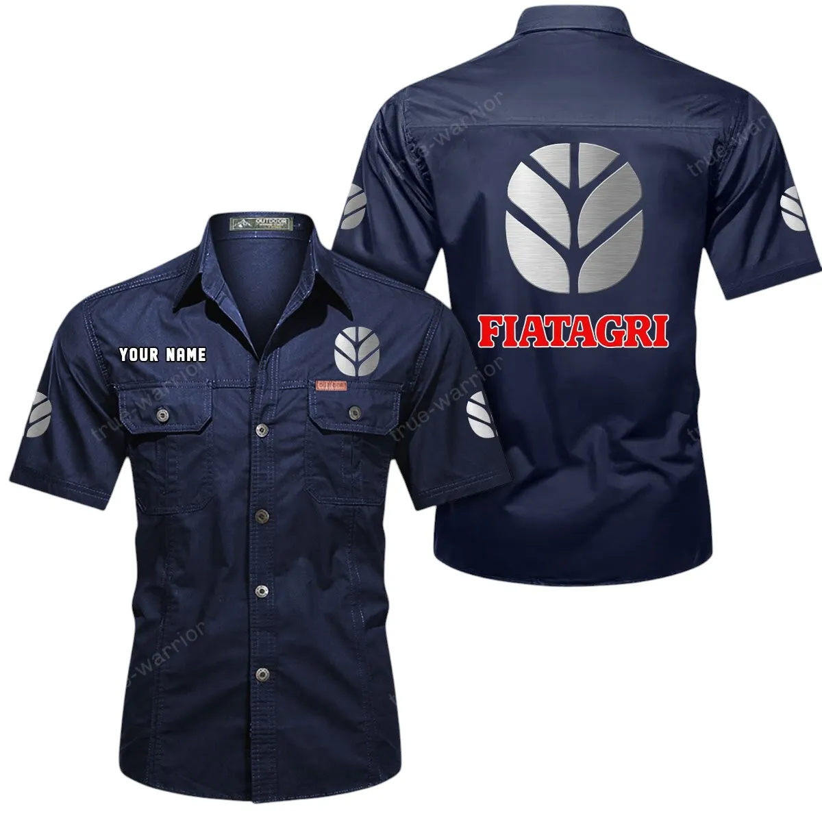 Fiatagri Short Sleeved Shirt, All Over Print Button Shirt CAR444052625937 – Dark Blue