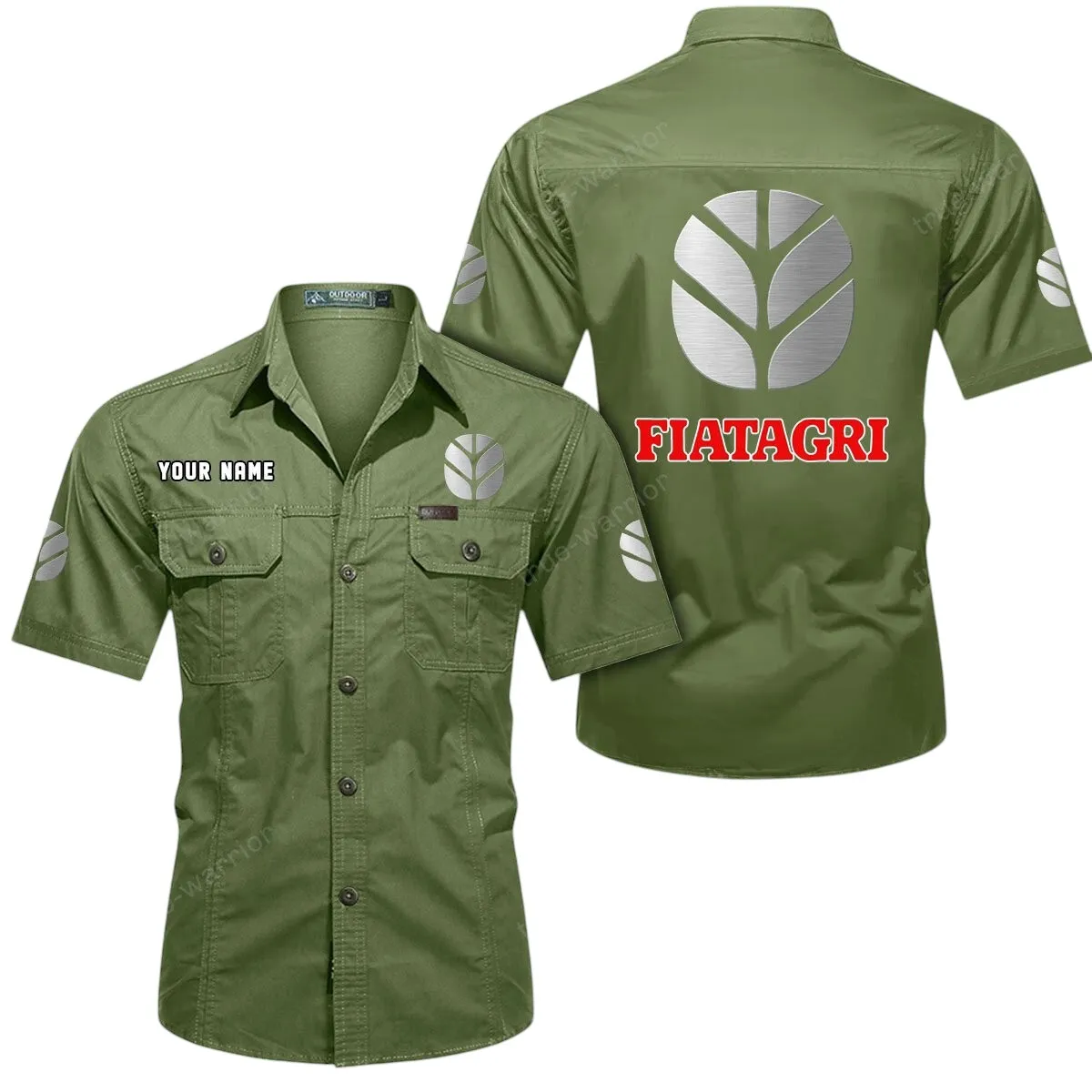 Fiatagri Short Sleeved Shirt, All Over Print Button Shirt CAR444052625937 - Army Green