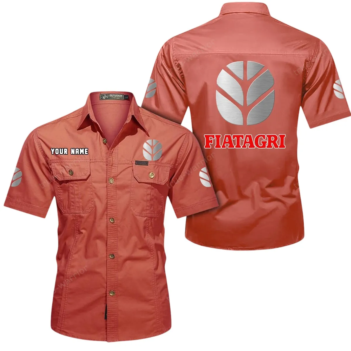 Fiatagri Short Sleeved Shirt, All Over Print Button Shirt CAR444052625937 - Khaki