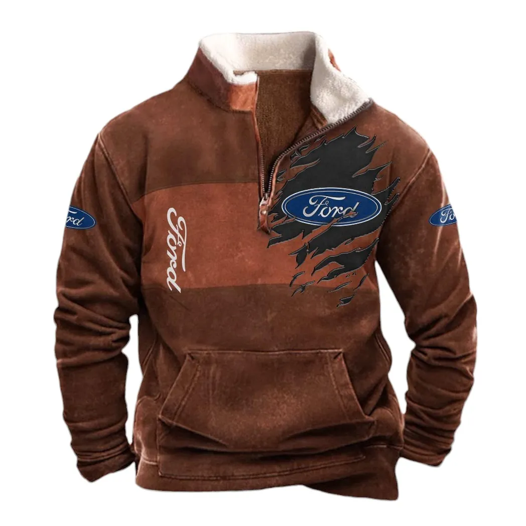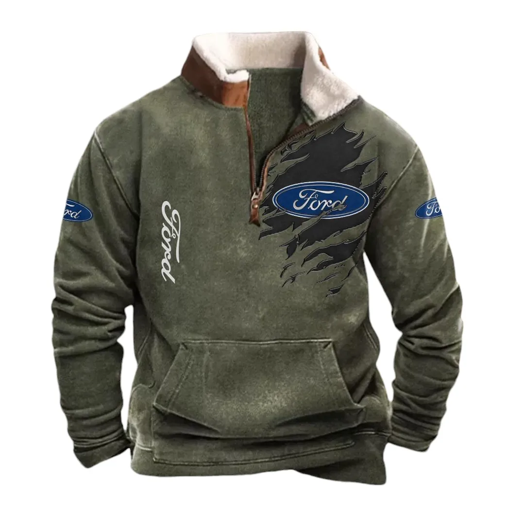 Ford Half Zip Fur Collar Hoodie CAR0926092038, All Over Print Half Zip Fur Collar Hoodie