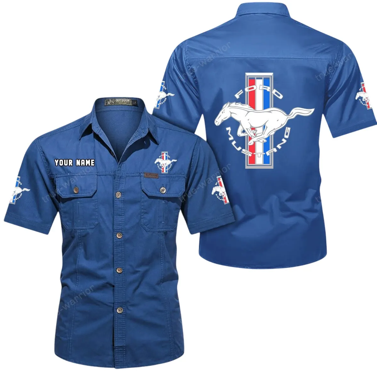 Ford Mustang Short Sleeved Shirt, All Over Print Button Shirt CAR444052625826 – Cowboy Blue
