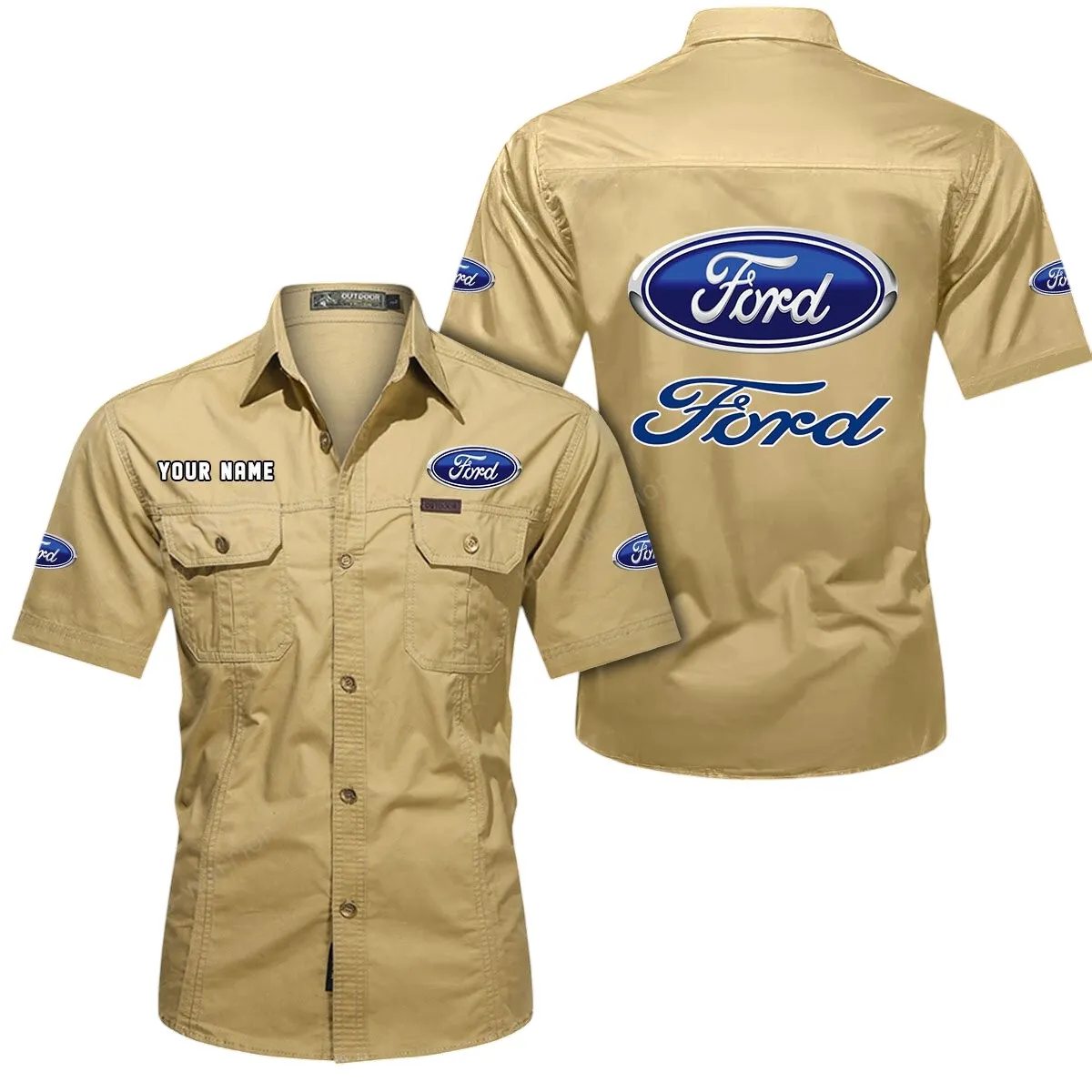 Ford Short Sleeved Shirt, All Over Print Button Shirt CAR444052625805 – Khaki