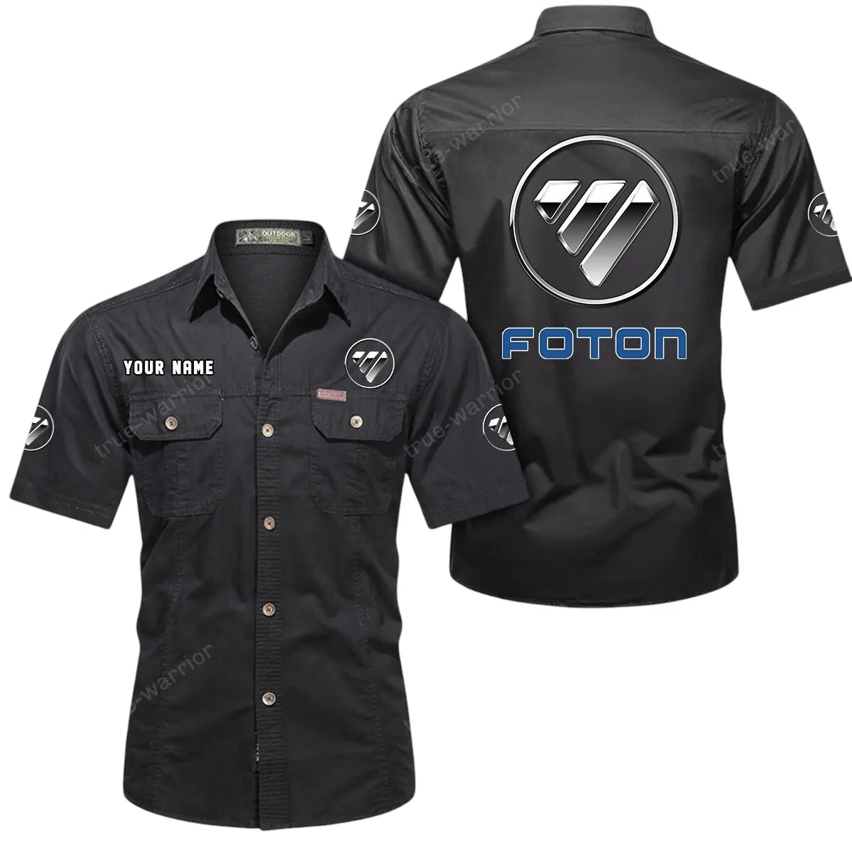 Foton Short Sleeved Shirt, All Over Print Button Shirt CAR444052625913 - Black