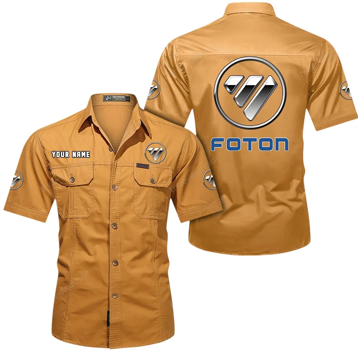 Foton Short Sleeved Shirt, All Over Print Button Shirt CAR444052625913 - Khaki