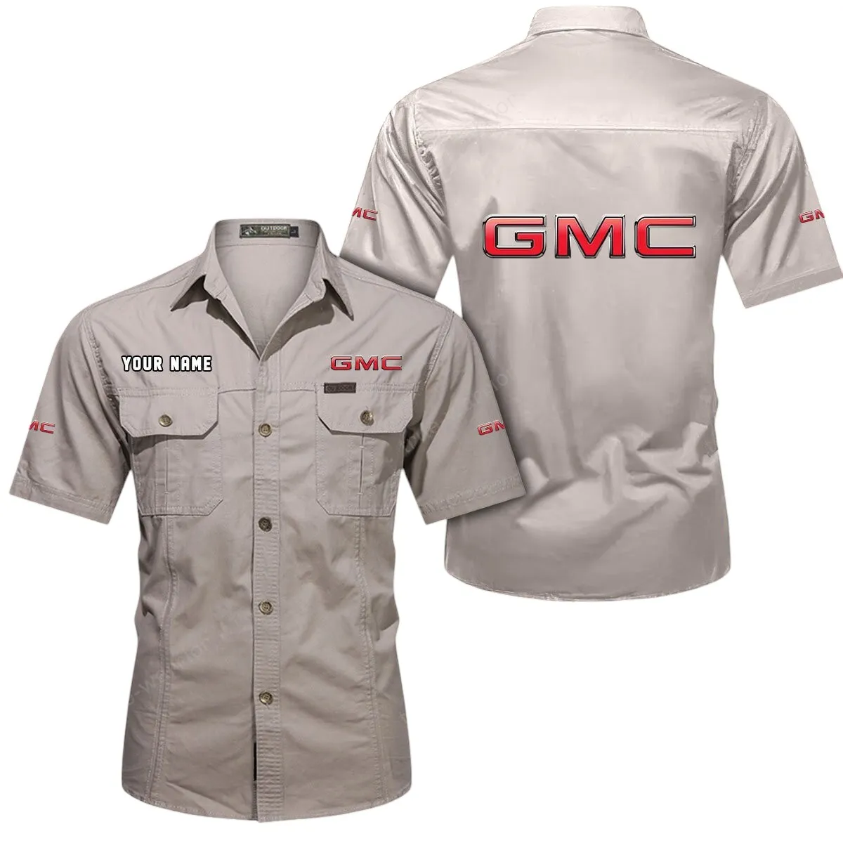 GMC Car Short Sleeved Shirt, All Over Print Button Shirt CAR444052625897 – Beige
