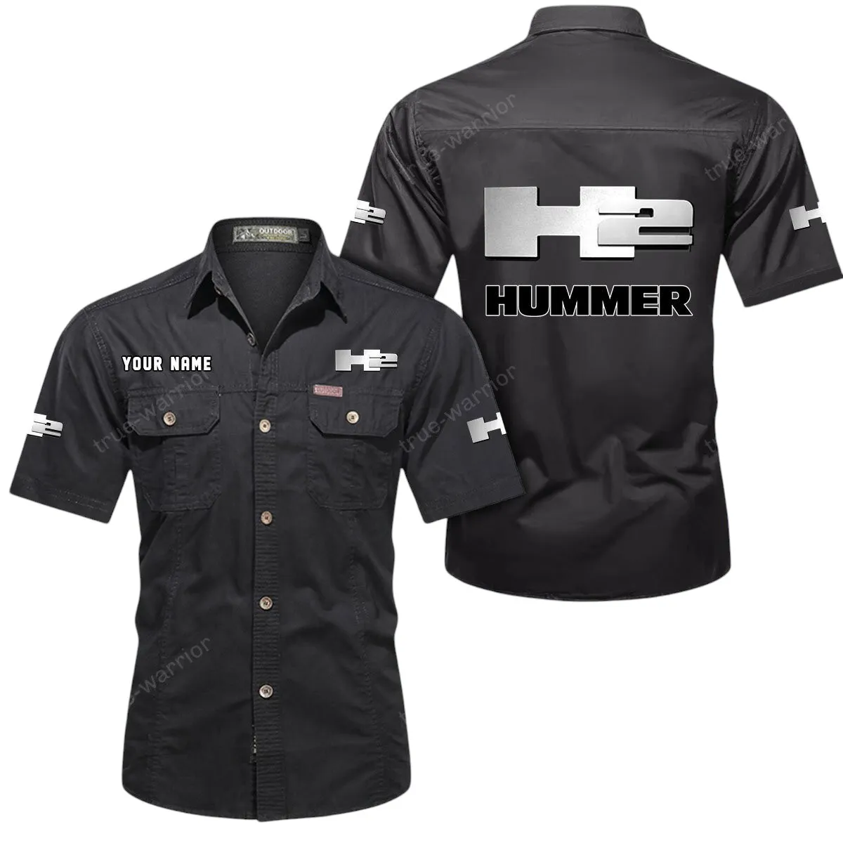 H2 Hummer Short Sleeved Shirt, All Over Print Button Shirt CAR444052625938 – Black