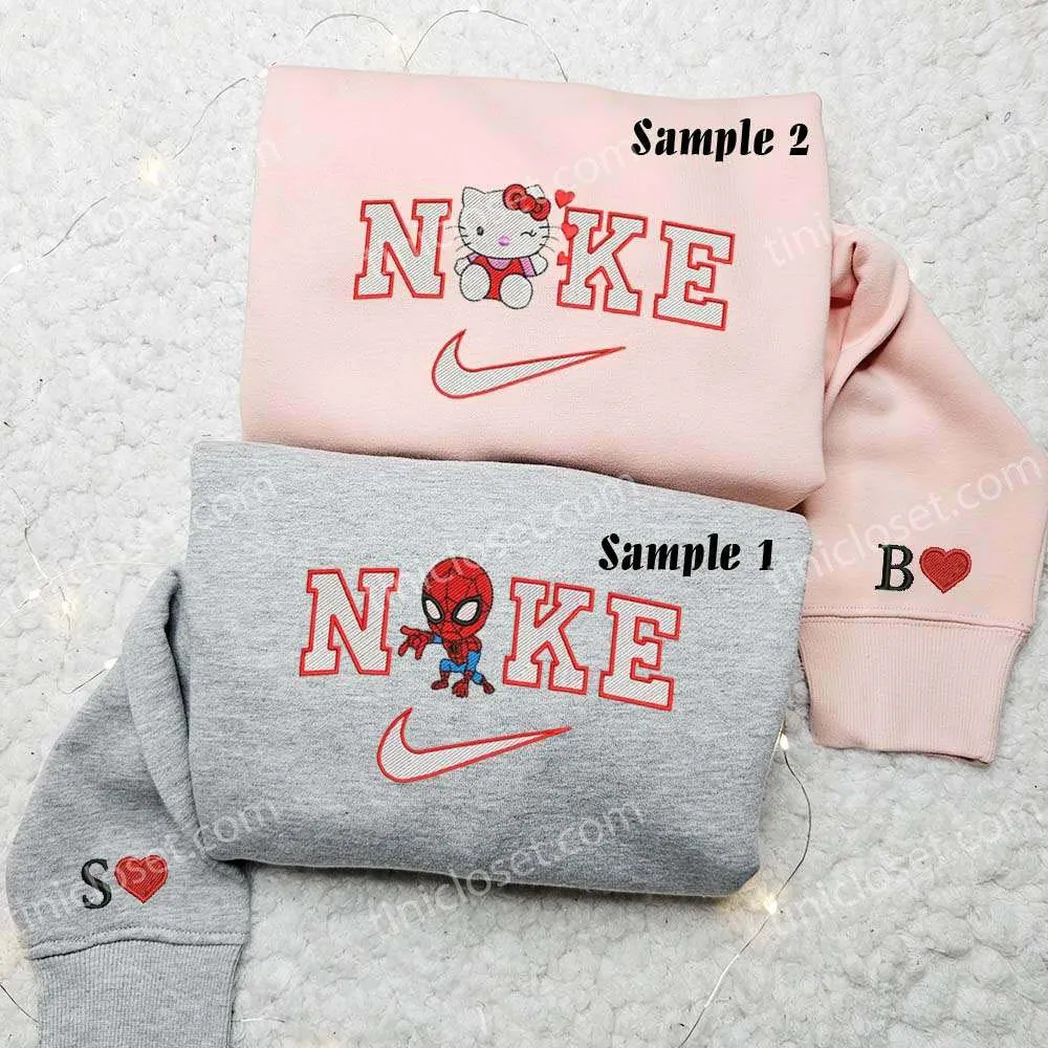 Hello Kitty and Spiderman x Nike Embroidered Shirt, Embroidered Sweatshirt Fashion Style For Couples
