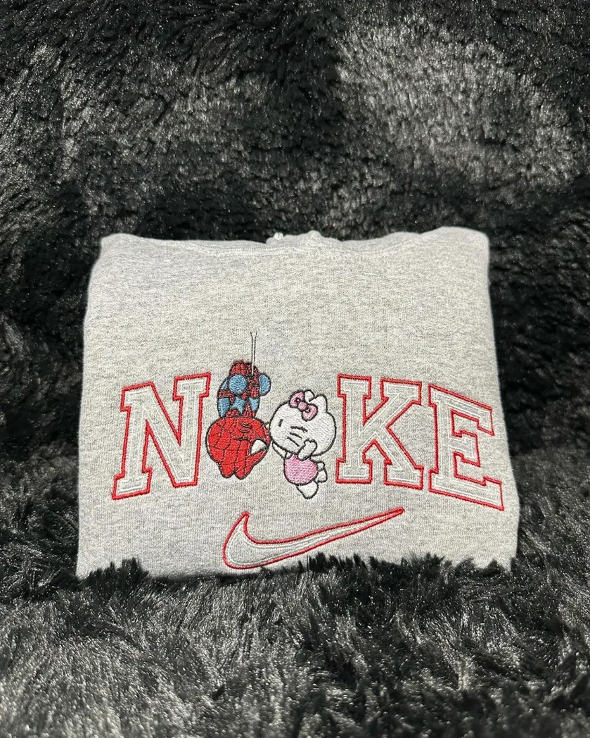Hello Kitty And Spiderman x Nike Embroidered Sweatshirt Fashion Style For Couples, Valentines Gift For Him/Her