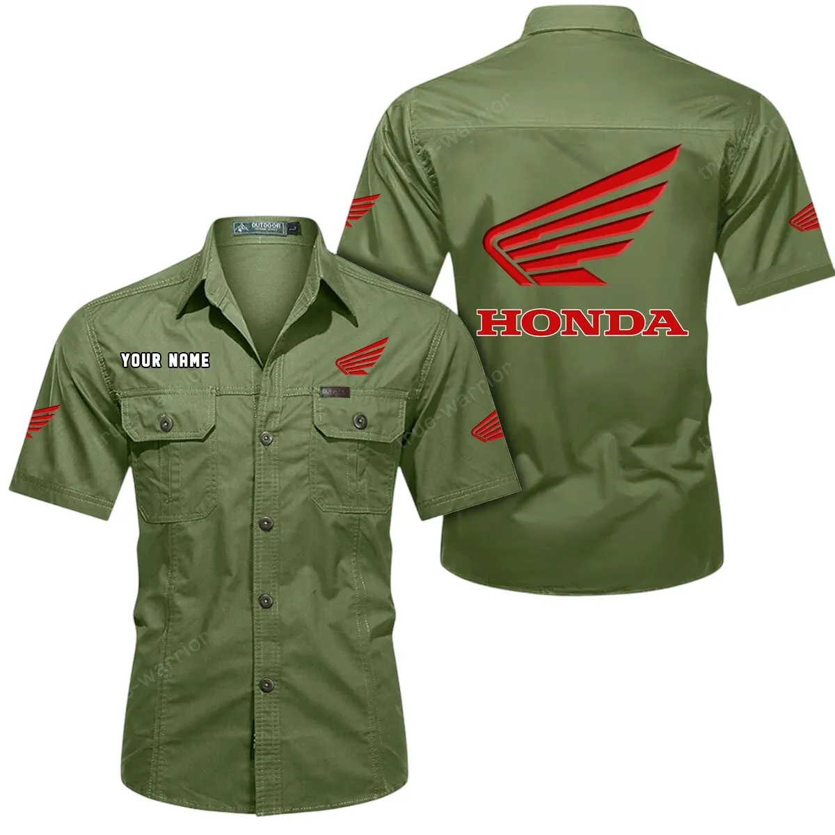Honda Motorcycle Short Sleeved Shirt, All Over Print Button Shirt CAR444052625778 - Army Green